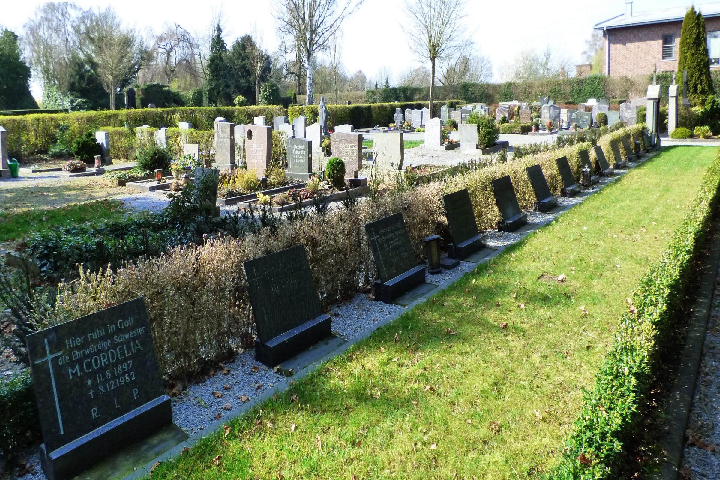 Standort: Der Schwesternfriedhof befindet sich auf dem Friedhof an der Glockenlandstraße, im Stadtteil Dremmen in der Stadt Heinsberg. Er ist Bestandteil der Friedhofanlage. Beschreibung: Das Marienkloster wurde auf Initiative des Pfarrers Gottfried Mommertz vom Orden der Cellitinnen zur Hl. Maria aus Köln gegründet. Am 18. September wurde der Grundstein gelegt. Die Einweihung erfolgte am 8. Dezember 1906. Das Haus vergrößerte sich durch den Anbau eines Mädchenheims in den Jahren 1908/09. Der Umbau zum Altenheim wurde im Jahre 1928 vollzogen. Nach mehr als 100 Jahren kehrten die Ordensschwestern 2010 zum Mutterhaus zurück. An der linken Seite des Friedhofeingangs sind in einer Grabreihe die Ordensschwestern beerdigt. Sie fanden hier in Dremmen am Ort ihres Wirkens auch ihre letzte Ruhe.