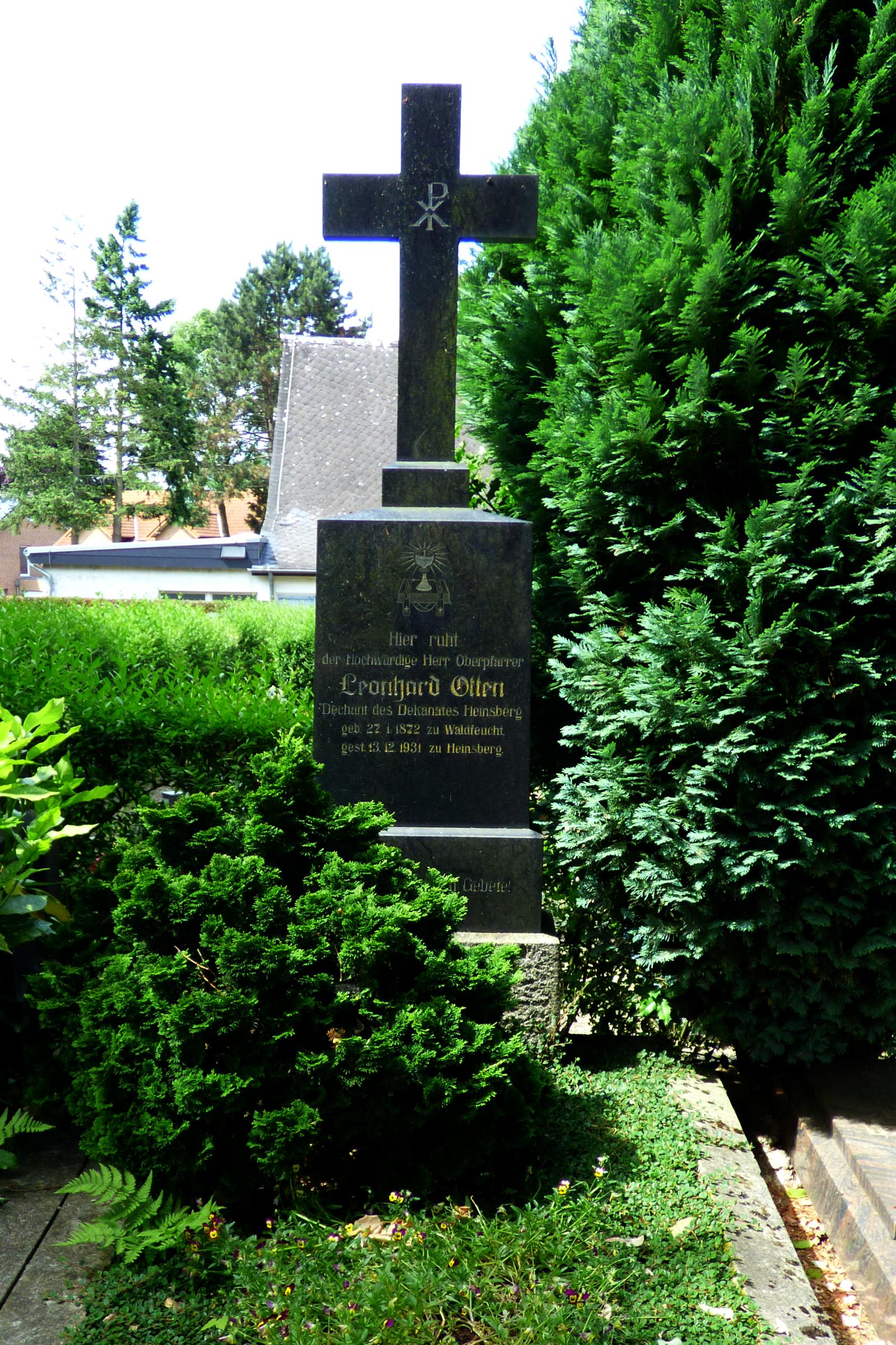Standort:auf Die Priestergräber befinden sich in der Nähe des Friedhofskreuzes auf der Friedhofsanlage zwischen dem Erpener Weg und der Geilenkirchener Straße in der Stadt Heinsberg. Die Priestergräber sind Bestandteil der Friedhofanlage. Beschreibung: Dechant Leonard Otten, * 27. 01.1872 zu Waldfeucht, + 13.12.1931 zu Heinsberg Prof. Dr. Gerhard Rauschen, * 13.10.1854 + 12.04.1917 Propst Wilhelm Krüppel, * 1904 + 1993 Propst Wilhelm Willms, * 04.11.1930, + 25.12.2002 Weihe 25.07.1957 Dechant Gerhard Florack