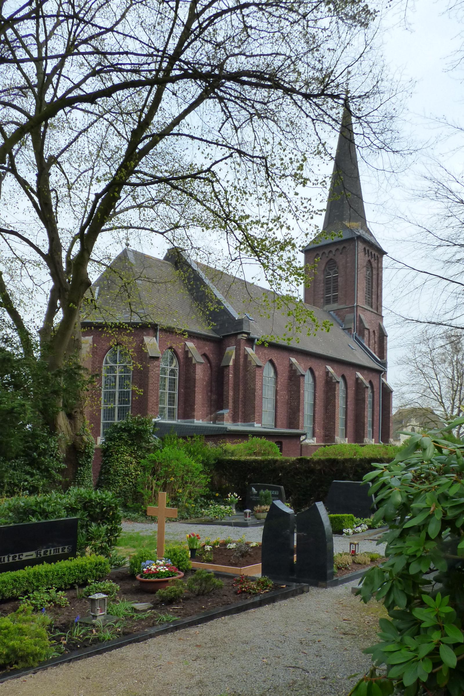 Standort: Die Friedhofanlage befindet sich an der Kirche, an der Randerather Straße, im Stadtteil Horst, in der Stadt Heinsberg. Beschreibung: Die Priestergräber, das Ehrenmal, der Ehrenfriedhof, das Hochkreuz, die Friedhofshalle, die Kreuzwegstationen sowie die beiden Grotten sind Bestandteile der Friedhofanlage.