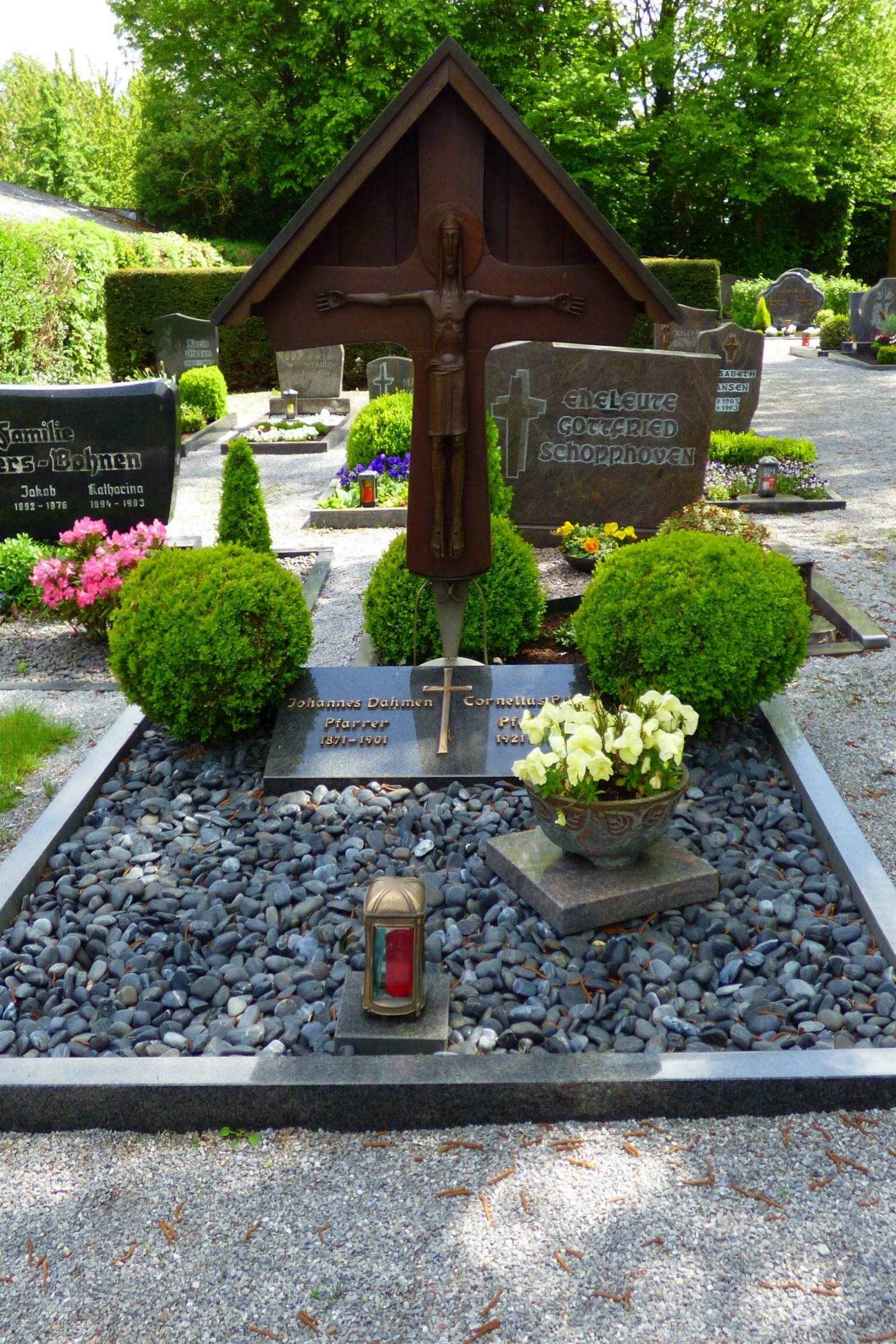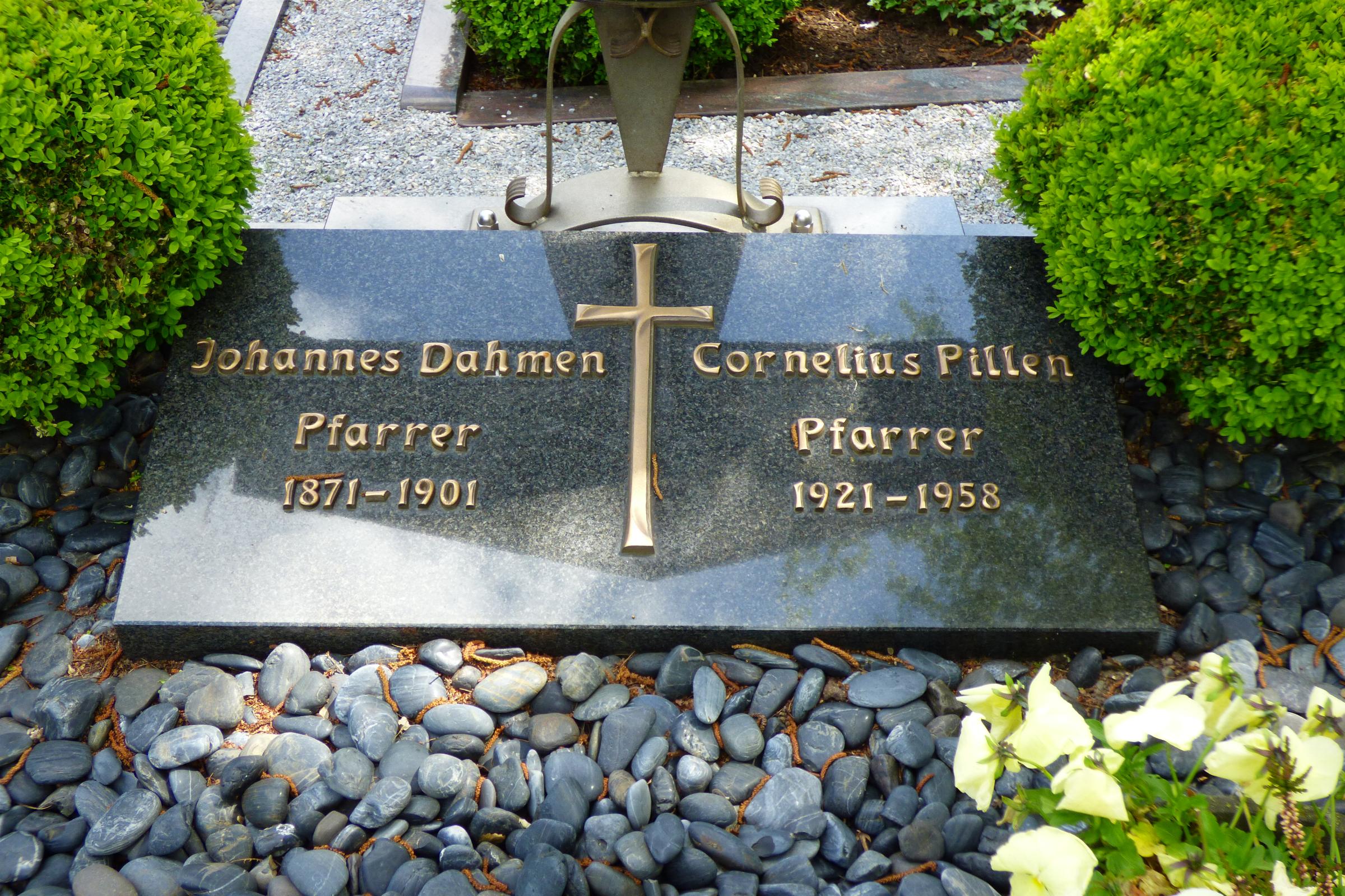 Standort: Die Priestergrabstätten befinden sich neben dem Friedhofskreuz auf dem Friedhof am Kastanienweg in Laffeld, in der Stadt Heinsberg. Sie sind Bestandteil der Friedhofanlage. Die Grabplatte trägt die Namen der Pfarrer Johannes Dahmen und Cornelius Pillen.