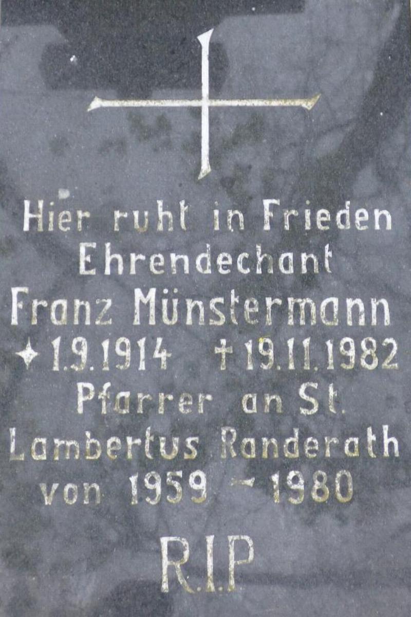 Standort: Die Friedhofskreuz befindet sich in zentraler Lage auf dem Friedhof an der Uetterather Straße im Stadtteil Randerath in der Stadt Heinsberg. Beschreibung: Das Friedhofskreuz ist zugleich die Priestergrabstätte der verstorbenen Geistlichen von Randerath. Die Priestergrabstätte ist Bestandtteil der Friedhofanlage.
