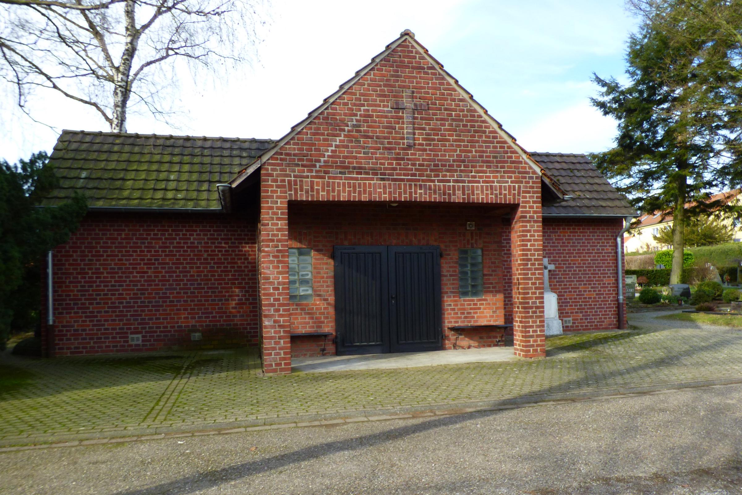 Standort: Die Friedhofshalle befindet sich auf dem Friedhof an der Schulstraße in Doveren, in der Stadt Hückelhoven. Beschreibung: Die Friedhofshalle ist eine Backsteinbau mit einem überbauten Vorplatz. Sie ist Bestandteil der Friedhofanlage