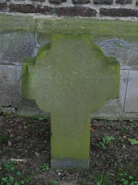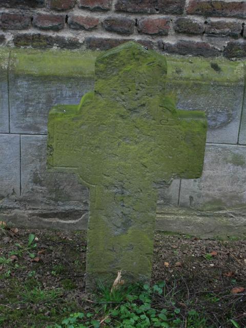 Kreuz Nr. 5 Barockes Blausteinkreuz von 17./18. Jh. mit den Resten Einstmals reicher Dekoration: u.a. Kranz mit IHS, Inschrift: den ....dhelm Re... Monsoyn... in E... Schlaffen... die seel Quellenhinweis: * Denkmalliste Hückelhoven, Nr. 113, Eintrag: 21. Mai 1987