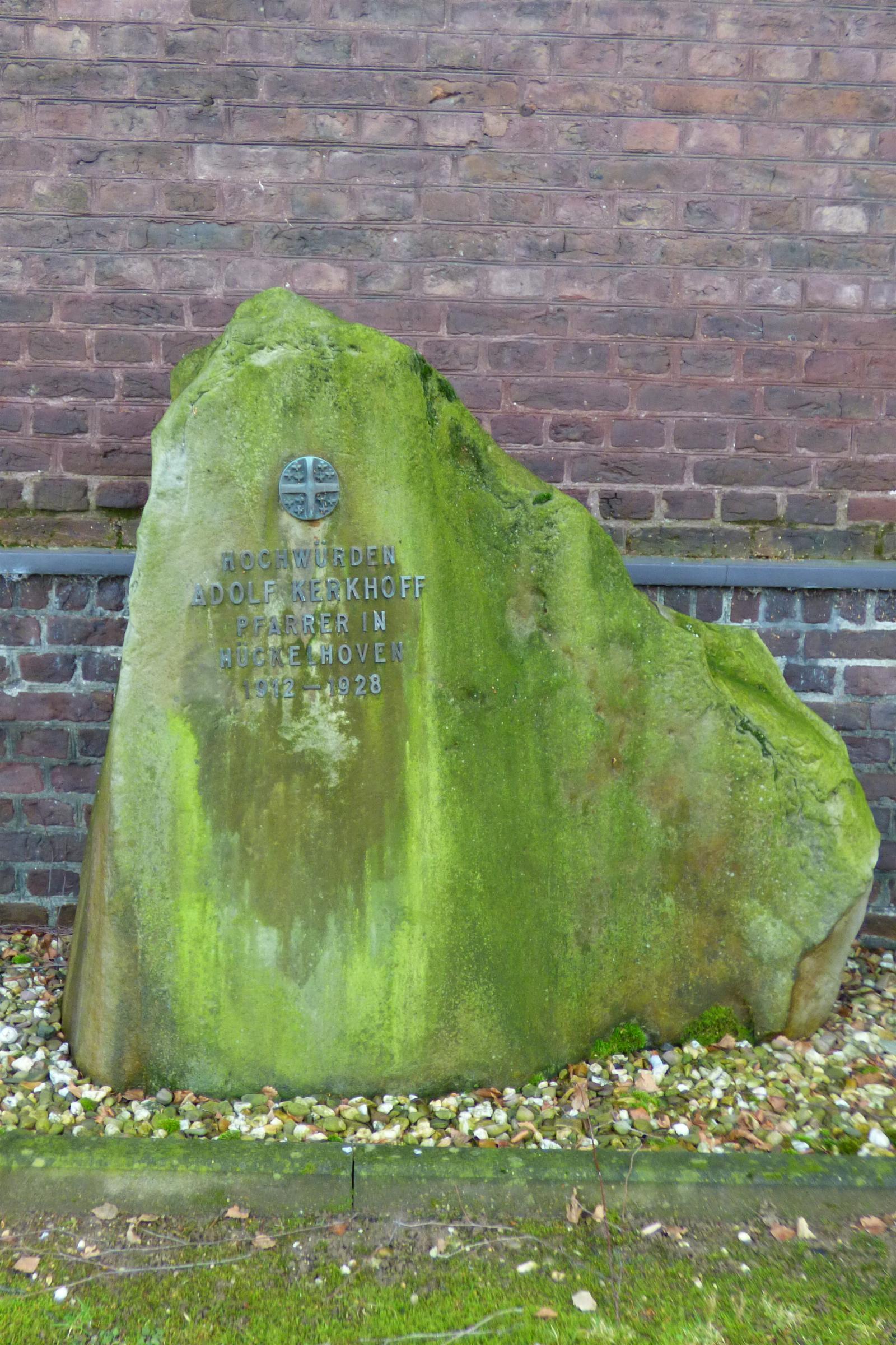 Standort: Das Priestergrab von Pfarrer Kerkhoff befindet sich auf dem Kirchhof der Kirche St. Lambertus an der Dinstühlerstraße, in der Stadt Hückelhoven. Beschreibung: Der Grabstein ist ein 1,50 m hoher und breiter Findling. Darauf steht in Metallbuchstaben die folgende Inschrift: