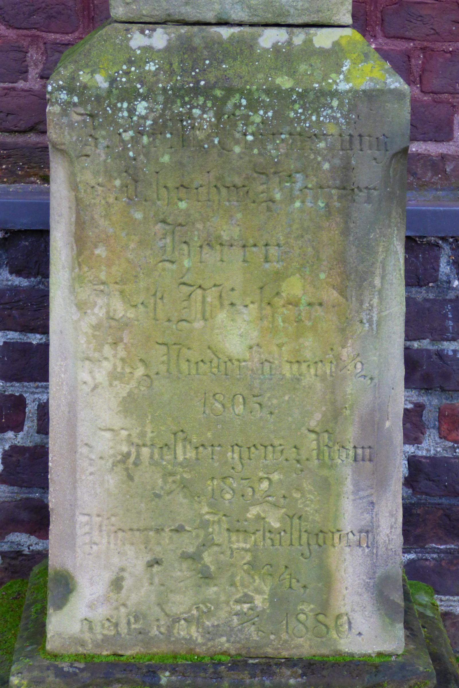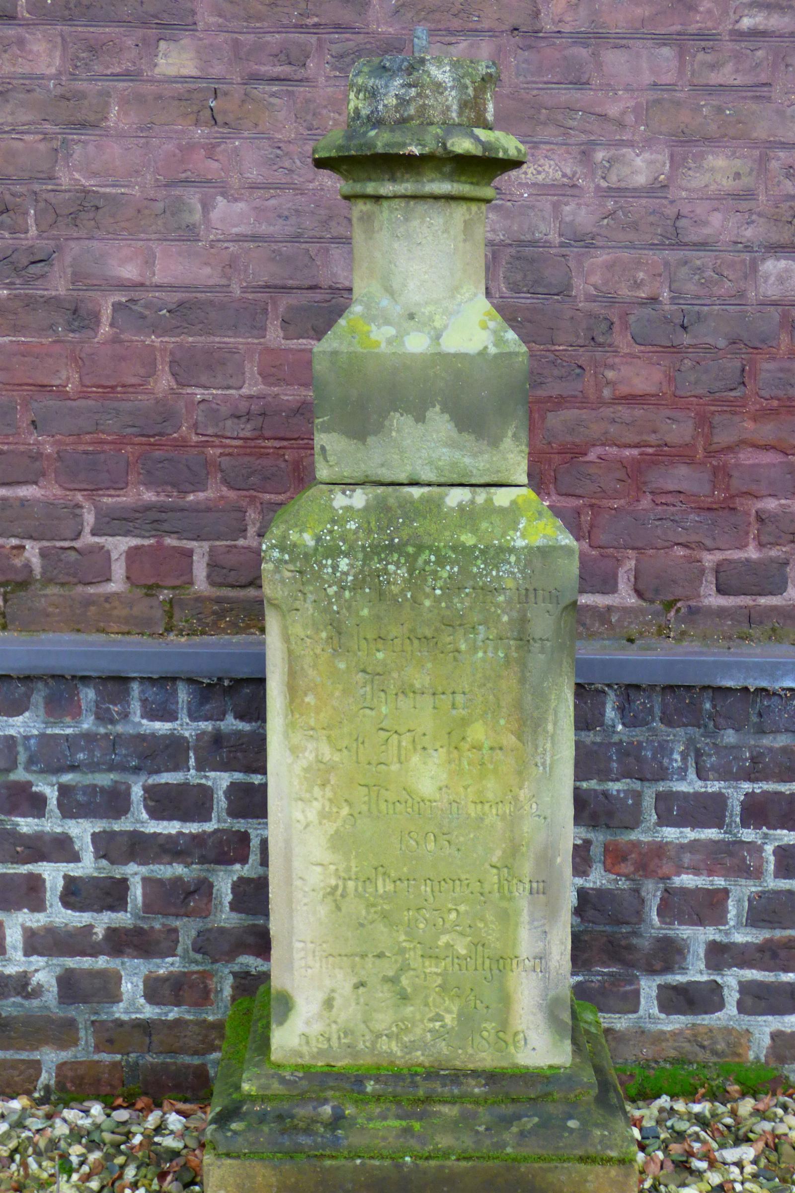 Zur Erinnerung an den hochwürdigen Pfarrer Petrus Wichard geb. zu Niedersalwei am 5. 2.1805 z. Priester gew. z. Rom 1832 Pfarrer in Hückelhoven bis 12.3. 1864 gest. 23.4.1880