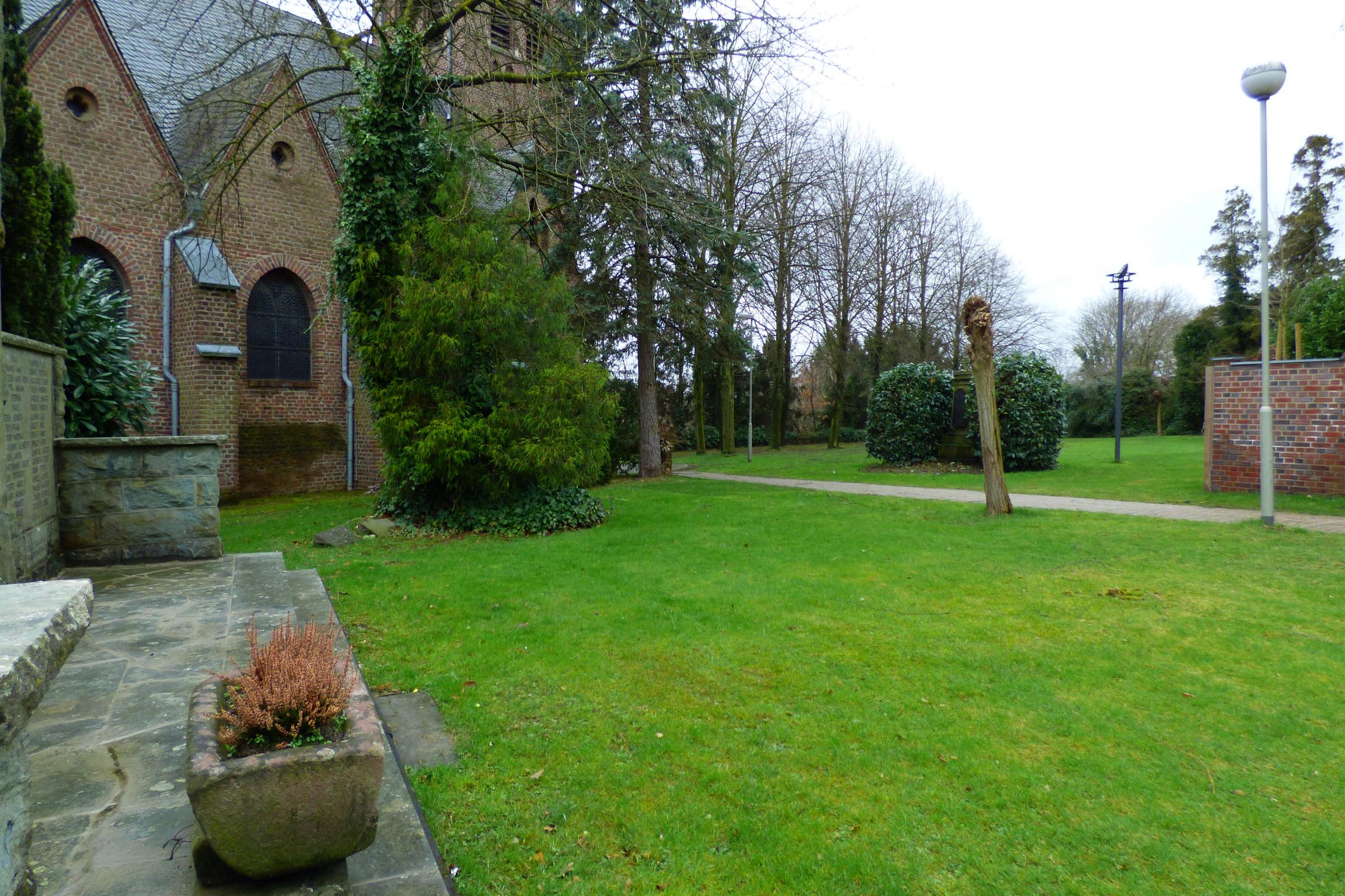 Standort: Die alte Friedhofanlage befinden sich an der Kirche St. Stephanus an der Palandstraße, im Stadtteil Kleingladbach, in der Stadt Hückelhoven. Zur Friedhofanlage gehören das Missionskreuz, das Ehrenmal 1914-1918, das Ehrenmal 1939-1945, das Friedhofskreuz, die Ehrengräber und die Histor. Grabsteine. Beschreibung: Die Geschichte der Kirche St. Stephanus geht bis in das 15. bis 16. Jahrhundert zurück. Schon in früher Zeit wurden die Toten auf dem Kirchhof rund um die Kirche beerdigt. Eine Zeitansage ist für Kleingladbach nicht angegeben. Es ist aber überliefert, dass der alte Friedhof früher ca. 90 cm höher als die Kirche lag. So musste man 4 bis 5 Stufen ins Innere der Kirche absteigen. Man trug deshalb im Jahre 1822 den alten Friedhof entsprechend ab, da das Kirchengebäude sehr unter Feuchtigkeit zu leiden hatte. In den fünfziger Jahren entstand im früheren Palmbusch ein neuer Friedhof. Der alte Friedhof, der sich im Bereich rund um die Kirche befand, wurde Anfang der siebziger Jahre weitgehend eingeebnet. Auf dem Weg zur Kirche befindet sich ein Missionskreuz aus dem Jahre 1747. Einzelne Gräber, Grabmale sowie die beiden Kriegerdenkmale, die an die Gefallenen und Vermissten der Weltkriege 1914 – 1918 und 1939 – 1945 erinnern, ergeben nunmehr eine geschlossene Anlage, deren Mittelpunkt die Pfarrkirche bildet. Quellenhinweis: Geschichtliches über Kleingladbach (Erstellt von Willi Jansen und Peter Reitz - überarbeitet von Friedel Dreßen)