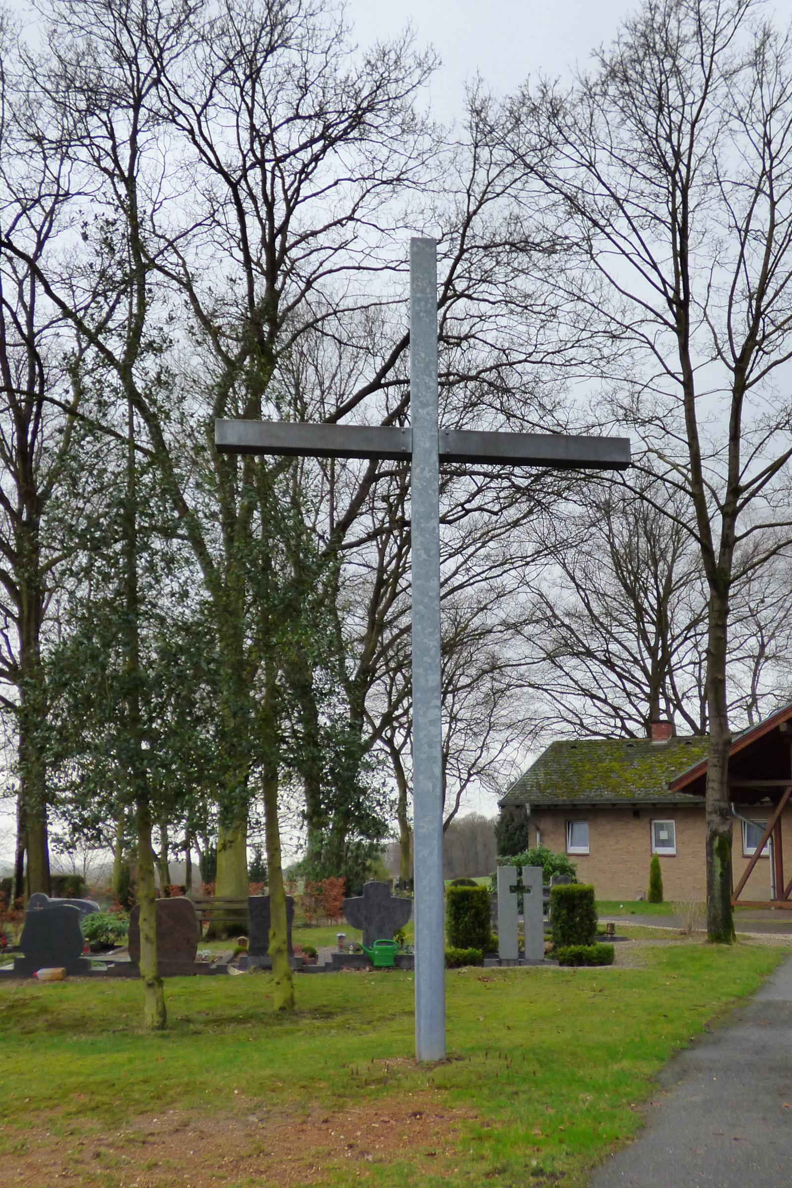 Standort: Das Friedhofskreuz befindet sich am Palmweg im Stadtteil Kleingladbach, in der Stadt Hückelhoven. Beschreibung: Das Friedhofskreuz ist ein ca. 8,00 m hohes Stahlkreuz in der Nähe des Eingangs und der Friedhofshalle. Das Kreuz ist Bestandteil der Friedhofanlage. |