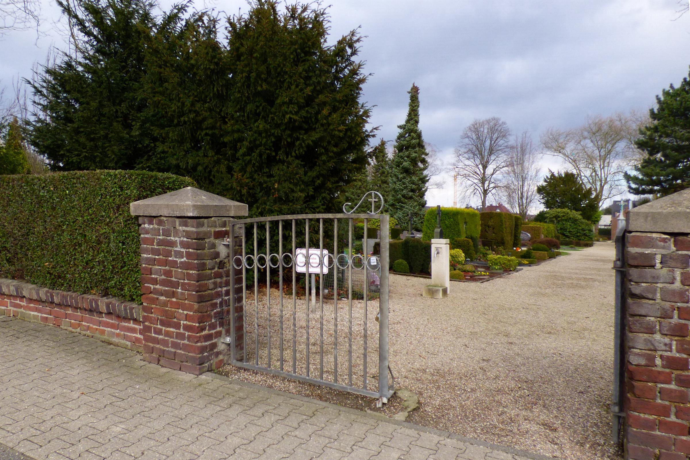 Standort: Die Friedhofanlage befindet sich an der Krickelberger Straße im Stadtteil Ratheim, in der Stadt Hückelhoven. Beschreibung: Der Friedhof an der Krickelberger Straße wurde im Jahr 1911 angelegt. Schmiedeeiserne Tore gewähren den Eingang zum Friedhof. Zur Friedhofanlage gehören neben den Gräbern die neue Friedhofshalle, die alte Friedhofshalle, das Ehrenmal 1914 - 1918, der Ehrenfriedhof und das Hochkreuz.