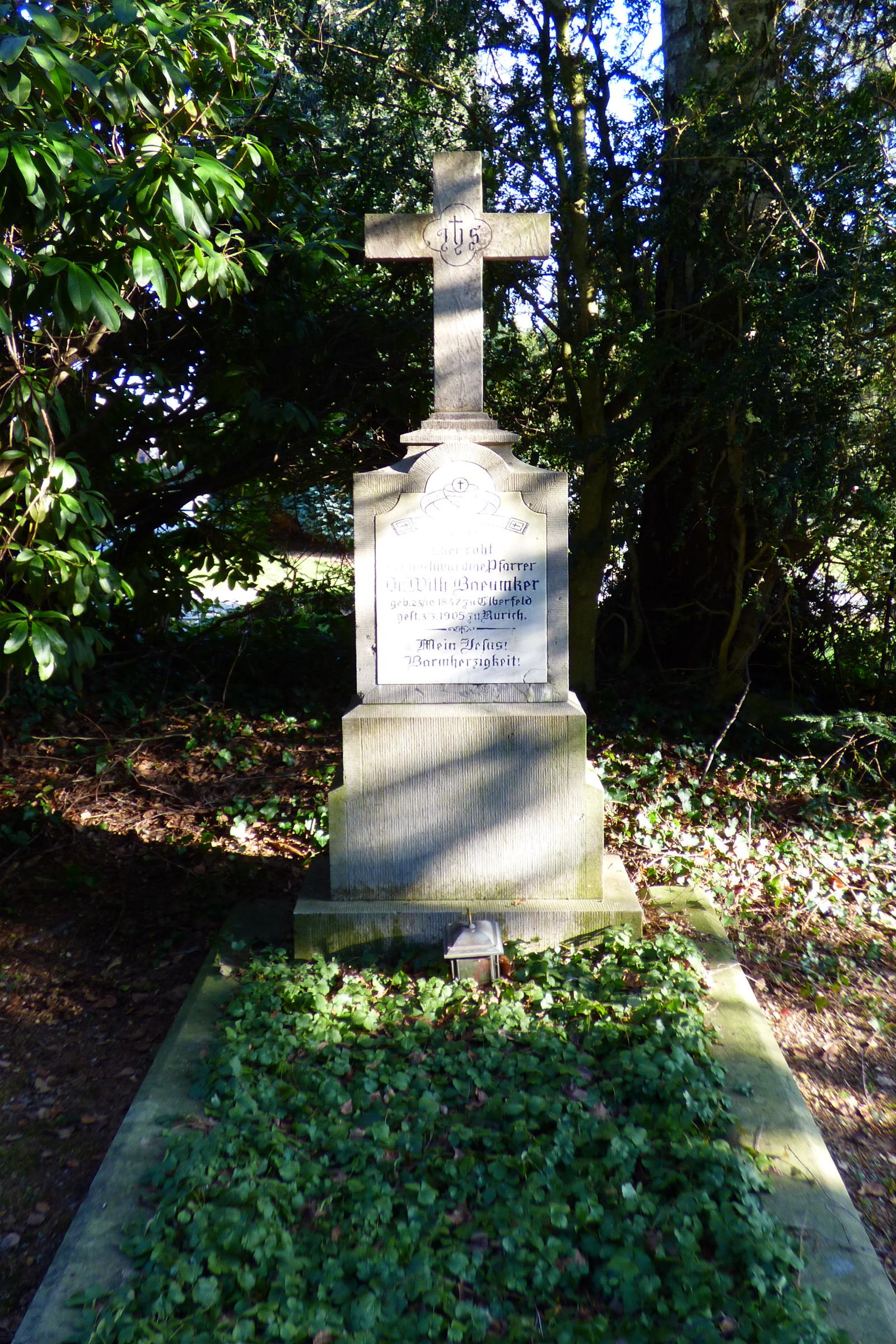 Pfarrer Dr. Wilh. Baeumker geb. 25. Oktober 1842 in Elberfeld gest. 3. März 1905 in Rurich Mein Jesus Barmherzigkeit Standort: Das Priestergrab Baeumker befindet sich auf dem Friedhof an der Römerstraße in Rurich, in der Stadt Hückelhoven. Das Priestergrab steht mit der Nr. 111 in der Denkmalliste der Stadt Hückelhoven unter Denkmalschutz. Es ist Bestandteil der Friedhofanlage Rurich. Quellenhinweis: * Denkmal Nr. 111 in der Stadt Hückelhoven