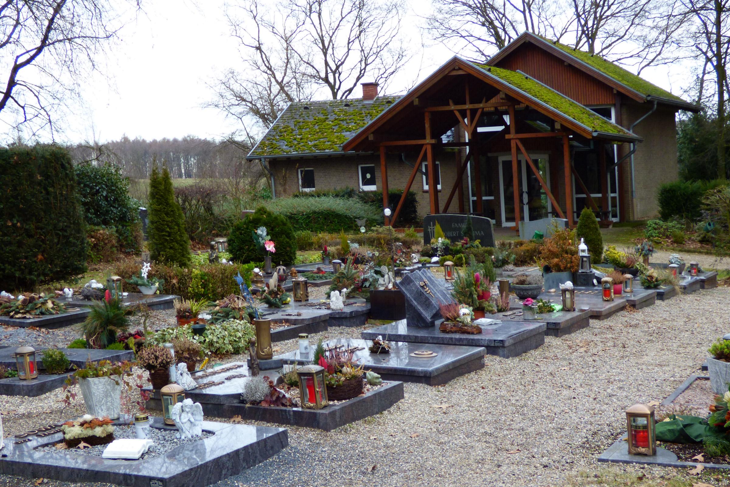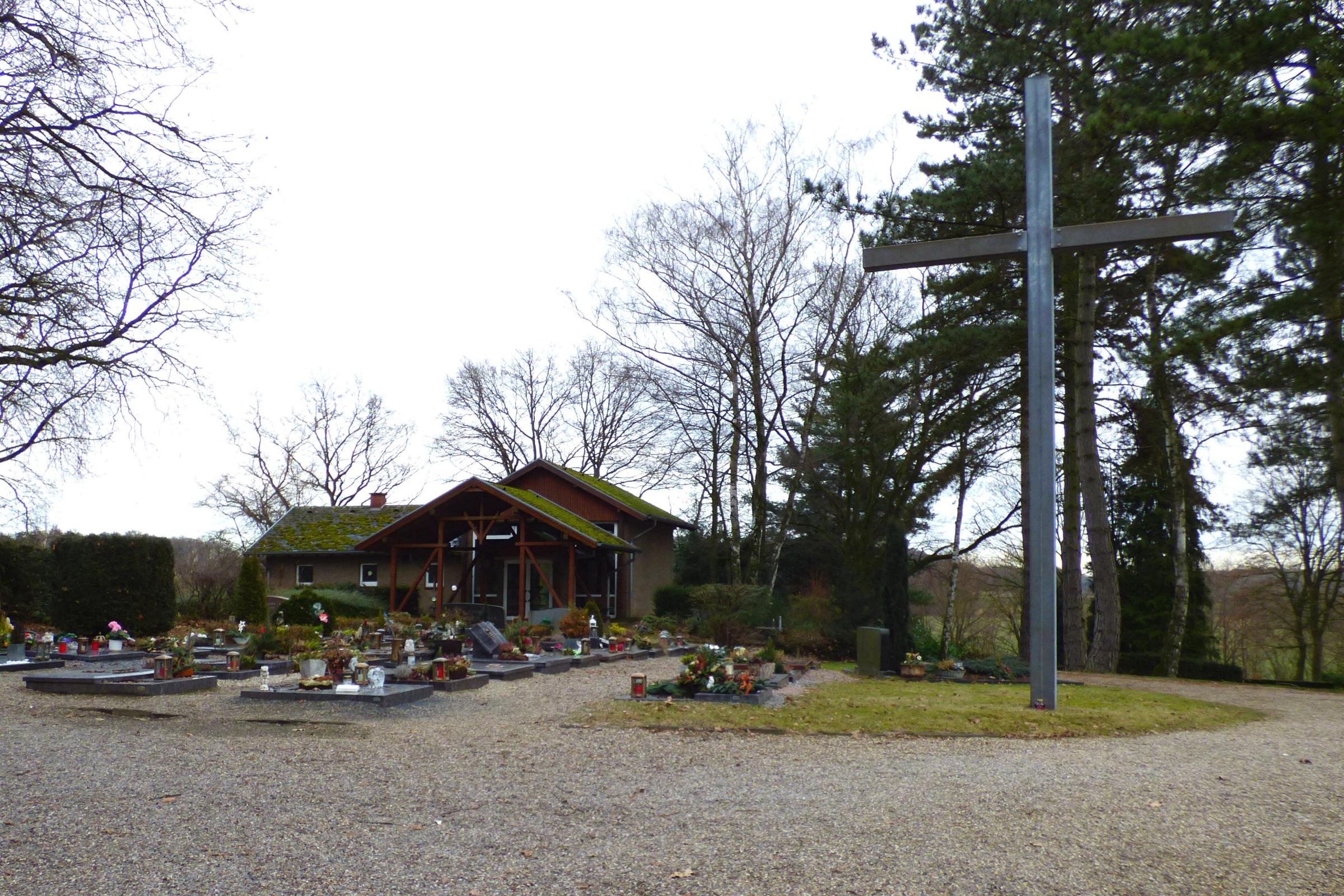 Standort: Die Friedhofanlage befindet sich Zur Fuchsfalle 5 in Schaufenberg, in der Stadt Hückelhoven. Beschreibung: Der Friedhof Zur Fuchsfalle 5 liegt hinter der Autobahn A 46 auf einem Grundstück in starker Hanglage. Zur Friedhofanlage gehören neben den Gräbern die Friedhofshalle und das Friedhofskreuz.