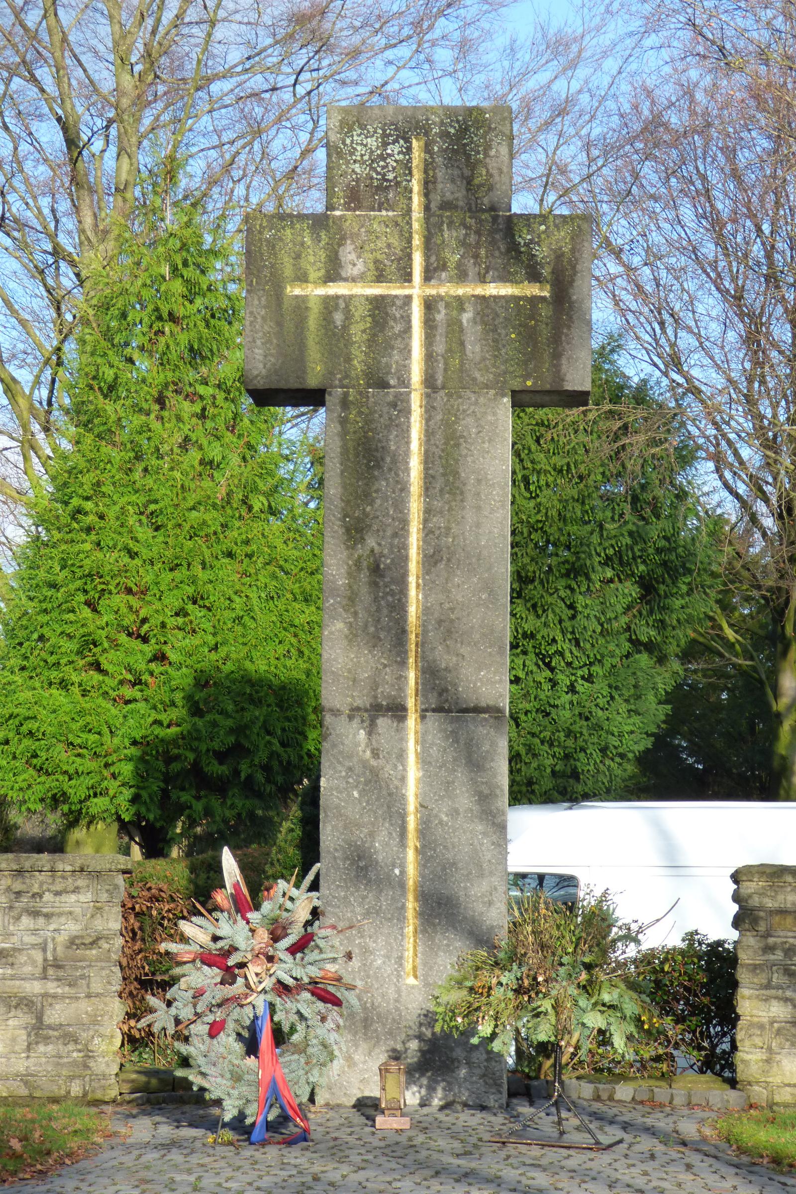 Standort: Das Friedhofskreuz befindet sich auf dem Friedhof an der Gutenbergstraße 3, im Stadtteil Scherpenseel, in der Stadt Übach-Palenberg. Es ist Bestandteil der Friedhofanlage. Beschreibung: Das Friedhofskreuz ist ein ca. 4,00 m hohen Steinkreuz. Es gehört zum Ehrenmal