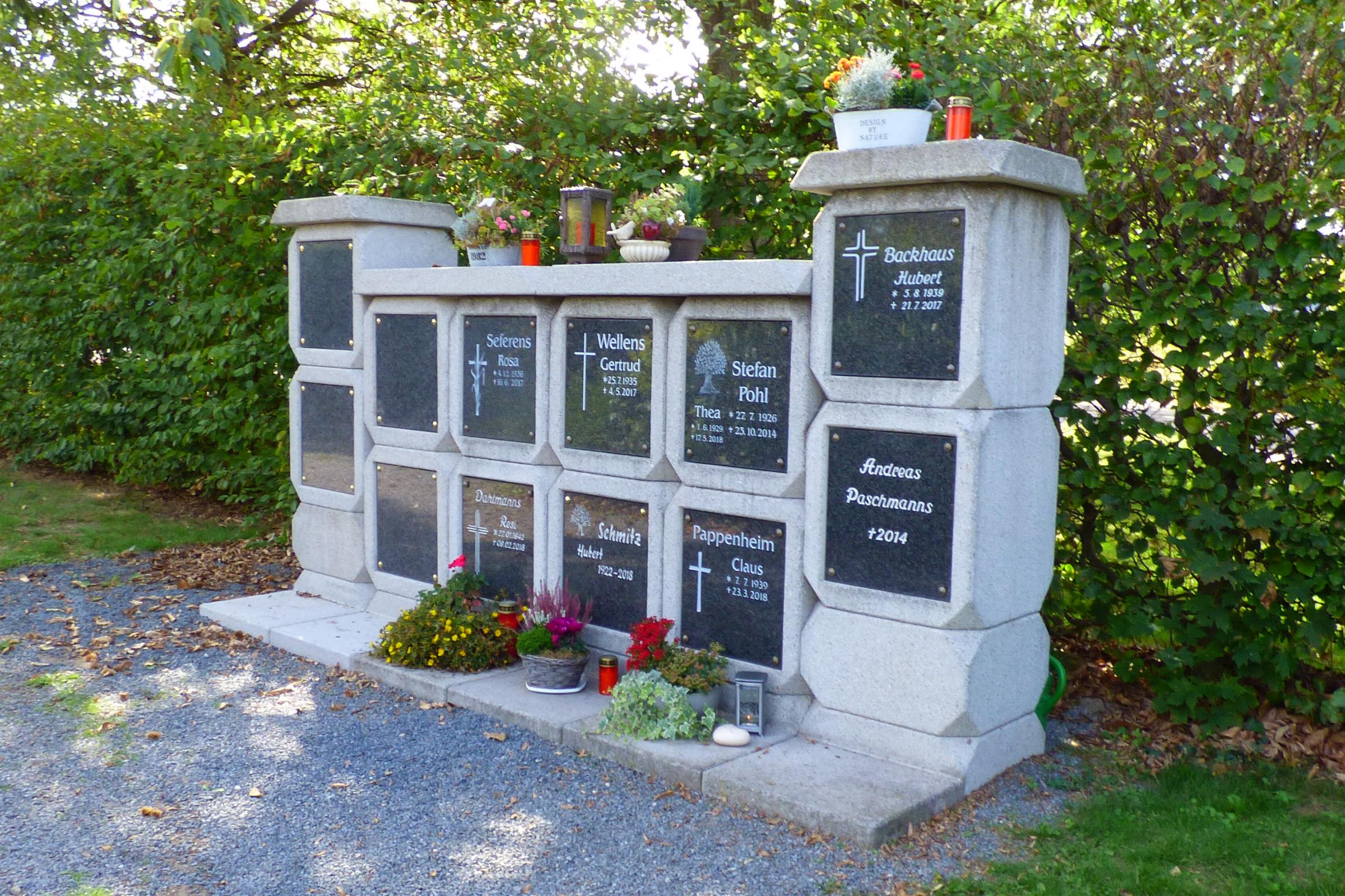 Standort: Das Kolumbarium befindet sich auf dem Friedhof am Feldchen, im Ortsteil Süsterseel, in der Gemeinde Selfkant. Geschichte: Bei dem Kolumbarium handelt es sich um Grabkammern, die zur Aufnahme und Aufbewahren von Urnen dienen. Ähnlich wie in südlichen Ländern werden Kolumbarien auch auf unseren Friedhöfen ein zunehmender Bestandteil der Begräbniskultur.