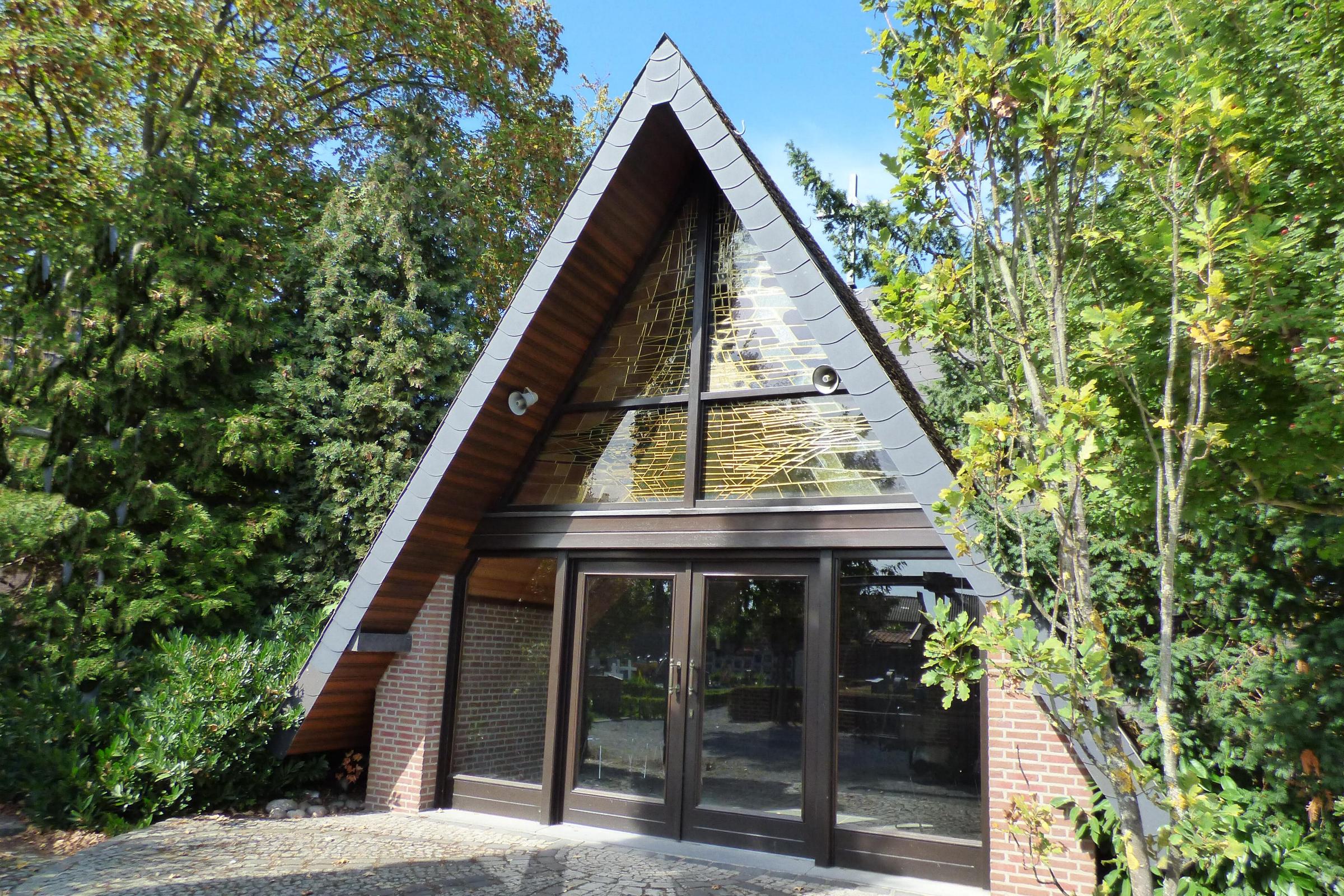 Standort: Die Friedhofshalle befindet sich auf dem Friedhof an der Gertrudisstraße, im Ortsteil Tüddern, in der Gemeinde Selfkant. Geschichte: Die Friedhofshalle ist ein Bauwerk mit einem langgezogenen Satteldach. Die Halle ist Ausgangspunkt für die Beerdigungen und Beisetzungen auf diesem Friedhof und ist Bestandteil der Friedhofanlage.