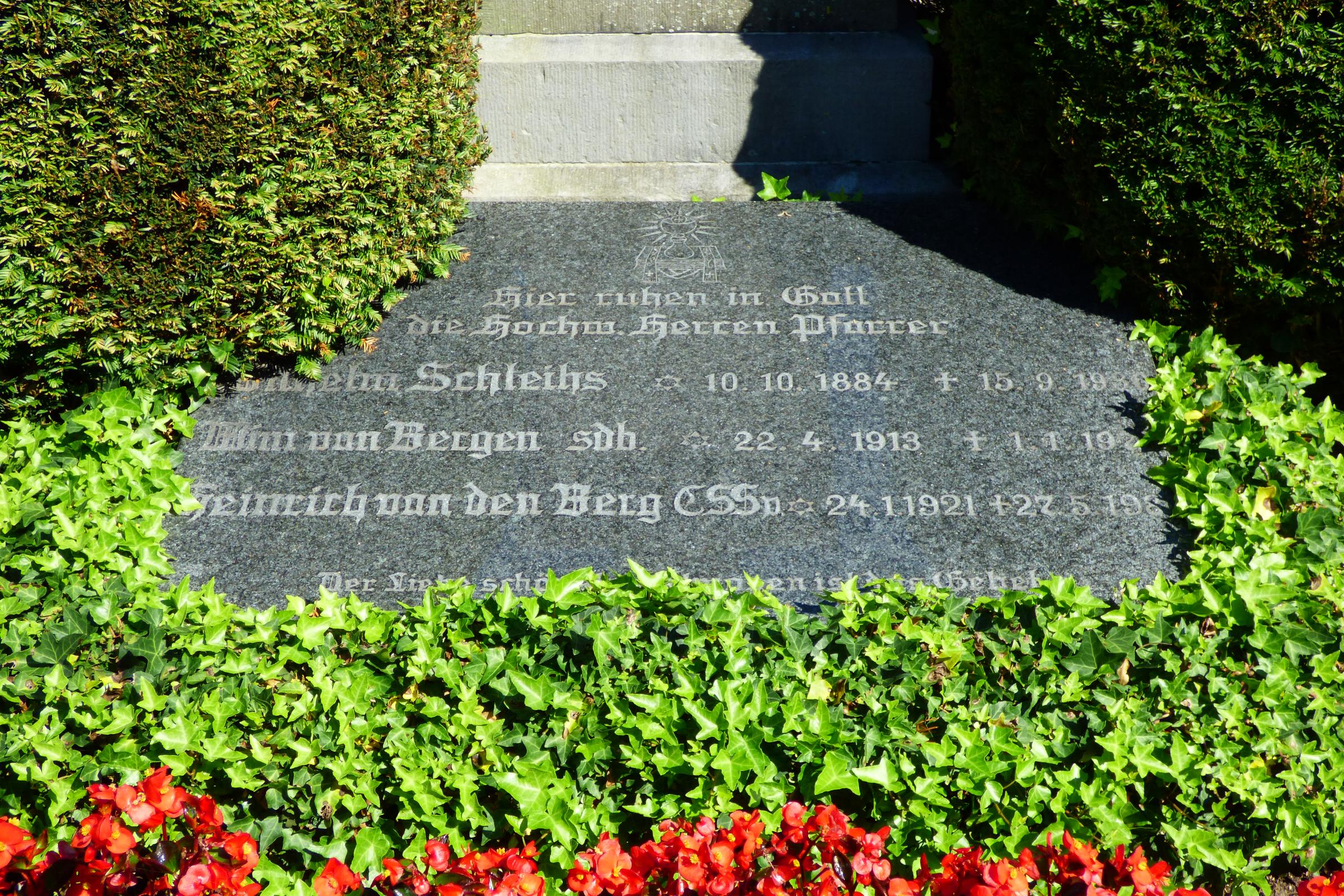 Standort: Die Priestergräber mit dem Hochkreuz haben ihren Standort auf dem Friedhof an der Effelder Straße, im Ortsteil Effeld, in der Stadt Wassenberg. Sie sind Bestandteil der Friedhofanlage. Beschreibung: Das Hochkreuz ist ein mehrfach gegliedertes Blausteinkreuz und trägt einem Korpus. Es hat eine Höhe von 3,00 m eine Breite von 0,85 m und eine Tiefe von 0,70 m X 0,45 m. Am Hochkreuz befinden sich auch die Gräber der verstorbenen Priester der Pfarrgemeinde Effeld. Es wurde in den Jahren 1933/34 erbaut und trägt die Inschrift: " Trag dein Kreuz nur immer froh - Denn dein Heiland will es so." Quellenhinweis: * Verzeichnis: Christliche Kleindenkmale im Kreis Heinsberg (Effeld 7)