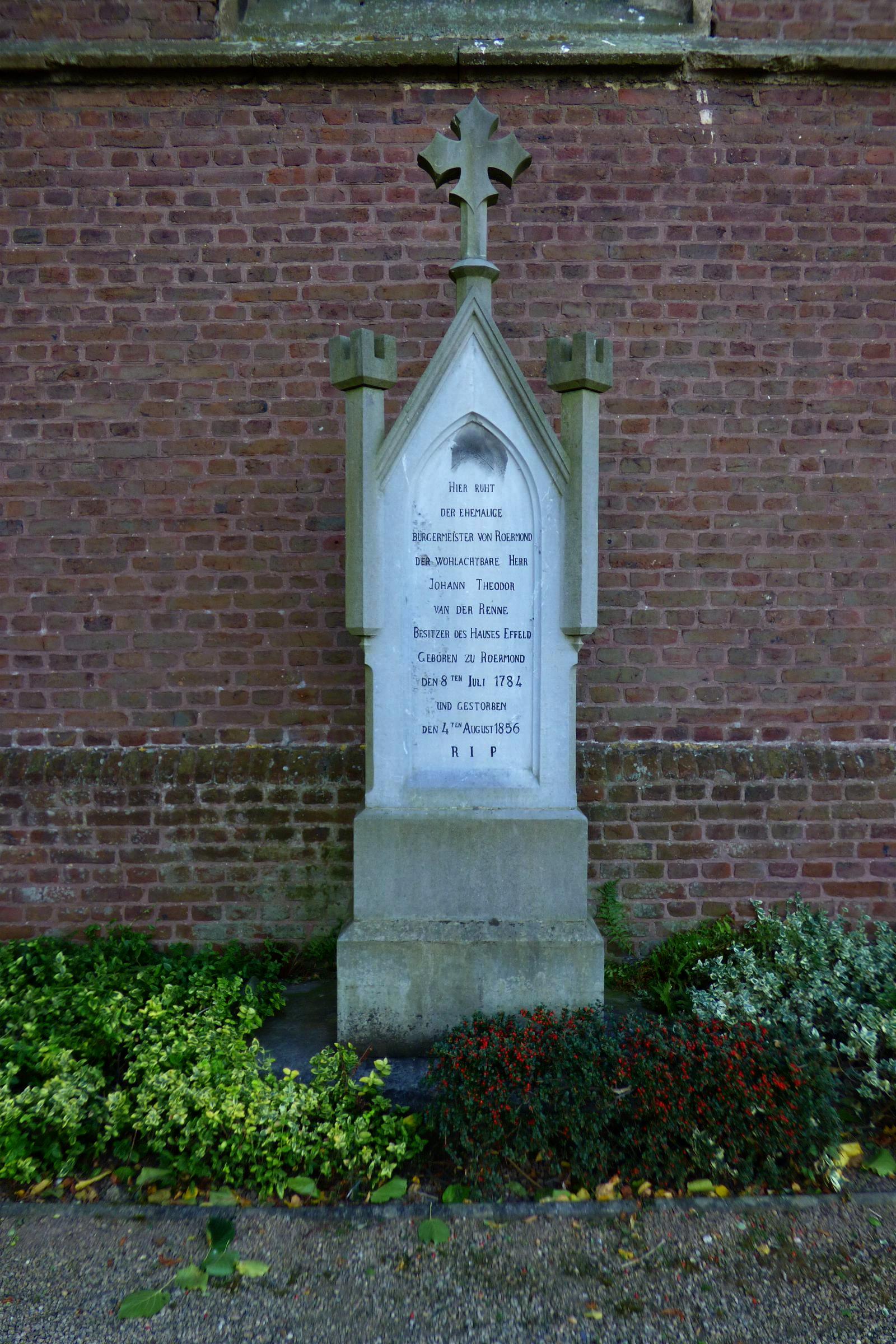 Standort: Die Bürgermeistergrabstätte befindet sich auf dem Friedhof von Steinkirchen an der Martinusstraße, in der Stadt Wassenberg. Beschreibung: Hier ruht der ehemalige Bürgermeister von Roermond, der wohlachtbare Herr Johann Theodor van der Renne. Besitzer des Hauses Effeld. Geboren zu Roermond den 8 ten Juli 1784 und gestorben am 4 ten August 1856. R I P