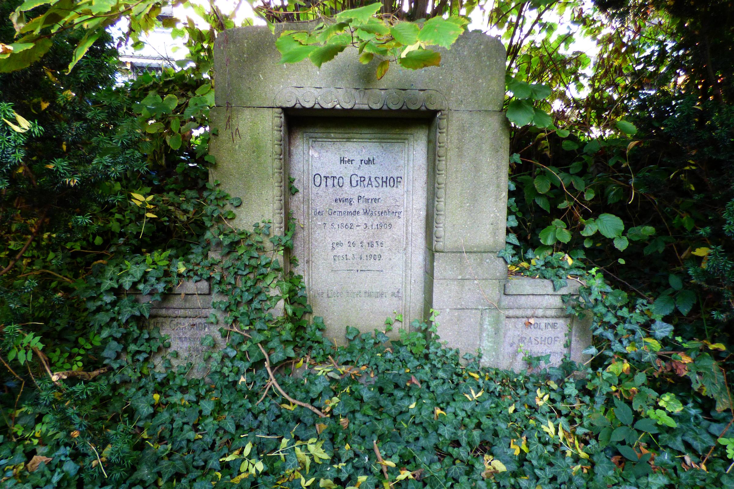 Standort: Der alte evangelische Friedhof befindet sich an der Roermonder Straße18, in der Stadt Wassenberg. In unmittelbarer Nachbarschaft liegt der jüdische Friedhof. Beschreibung: Ebenso wie der jüdische Friedhof mit der ehemals nahegelegenen Synagoge, liegt auch der alte evangelische Friedhof mit der evang. Hofkirche in geringer Entfernung zum Gotteshaus. Die wenigen noch verbliebenen Grabsteine sowie die gesamte Friedhofanlage sind ein schützenswertes Gut, die vielfach geschichtlichen Hintergrund beinhalten. So zum Beispiel der Grabstein von: H i e r r u h t O t t o G r a s h o f e v a n g. P f a r r e r d e r G e m e i n d e W a s s e n b e r g 7. 5. 1 8 6 2 ------ 3 . 1. 1 9 0 9 g e b. 26. 2. 1 8 3 6 g e s t. 3. 1. 1 9 0 9 D i e L i e b e h ö r t n i m m e r a u f
