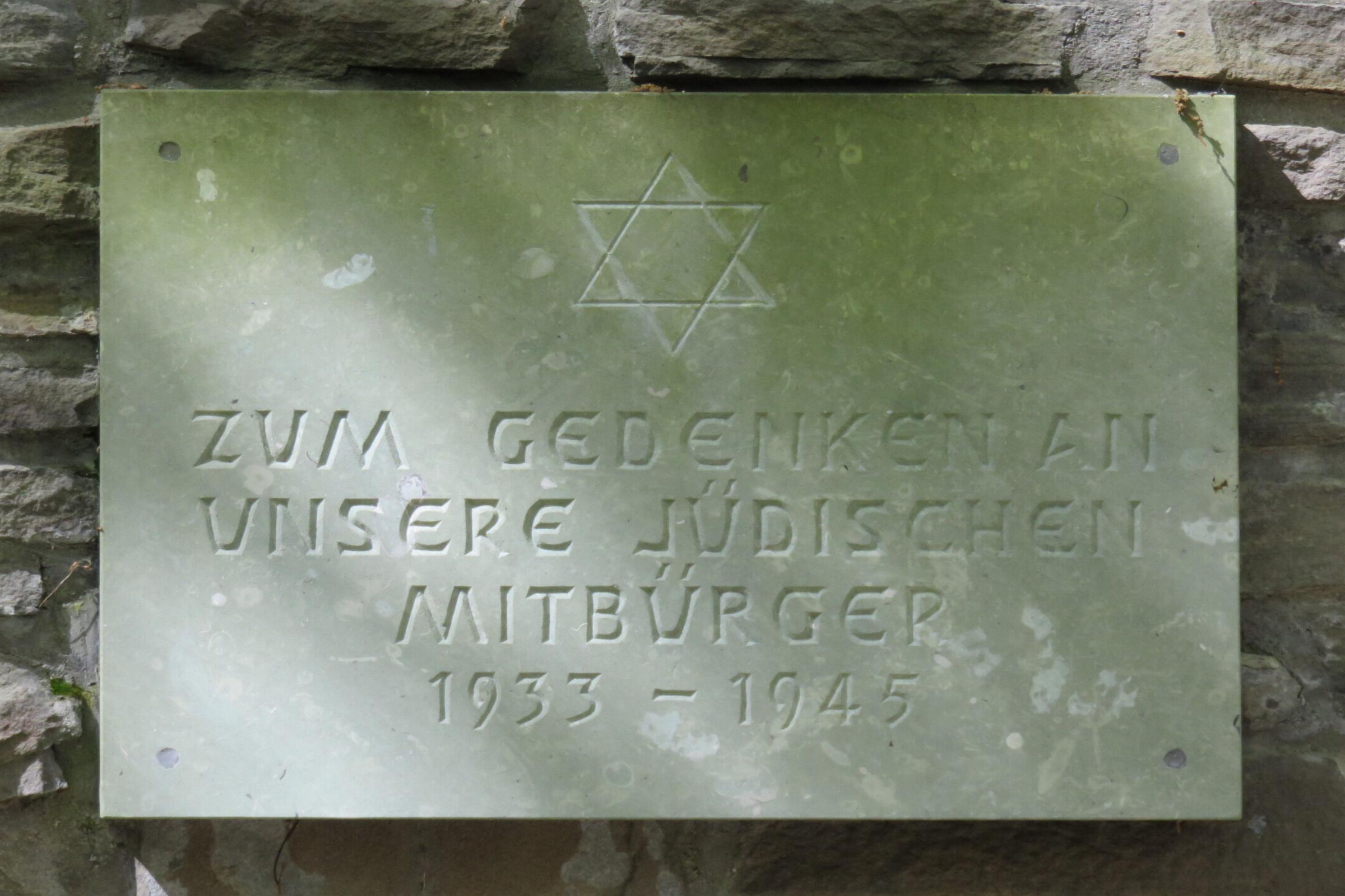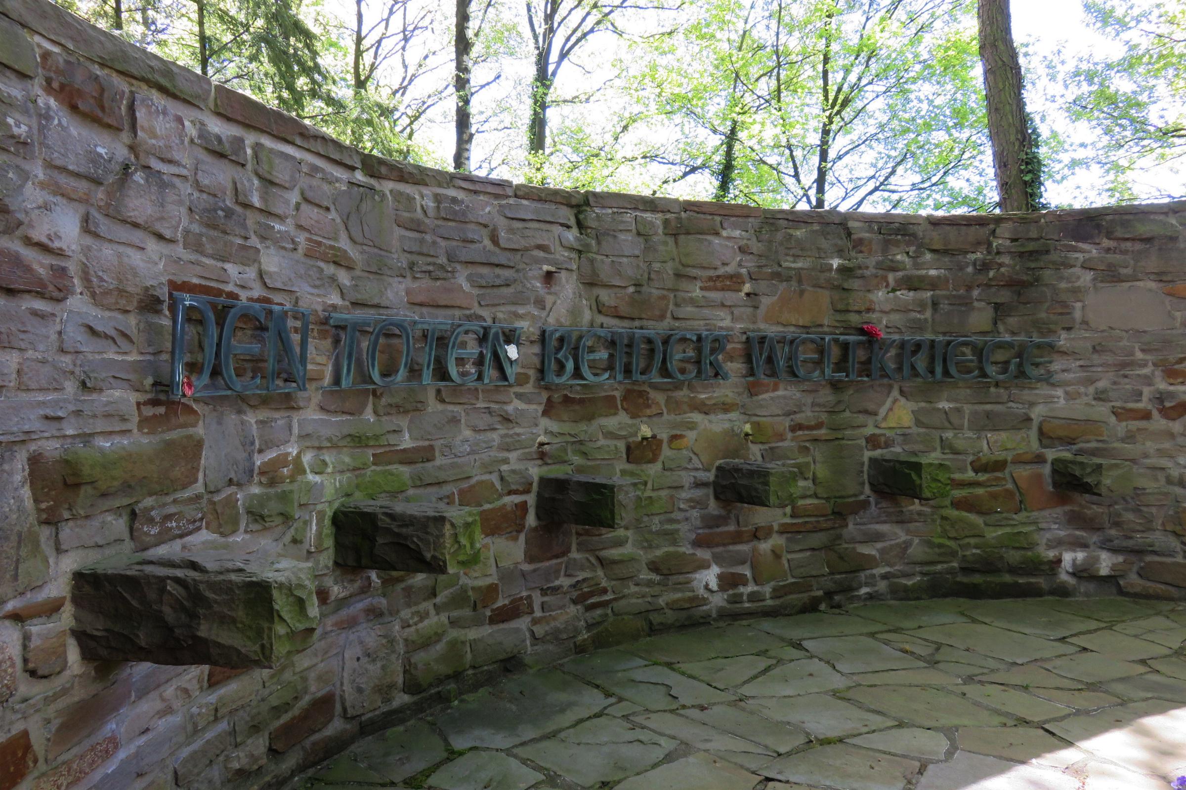 Beschreibung: Bei dem Kriegerdenkmal handelt es sich um eine Gedenkstätte für die gefallenen Soldaten beider Weltkriege. Die Gedenkstätte wurde vom Wassenberger Architekten Paul Wollenweber entworfen. Auf einem großen, nach einer Seite offenen Rundell aus gemauerten Bruchsteinen, steht ein Kruzifix. Ebenfalls ist der Schriftzug "DEN TOTEN BEIDER WELTKRIEGE" zu lesen. Innerhalb der Gedenkstätte wurde zu einem späteren Zeitpunkt eine Gedenktafel "ZUM GEDENKEN AN UNSERE JÜDISCHEN MITBÜRGER 1933 - 1945" angebracht.