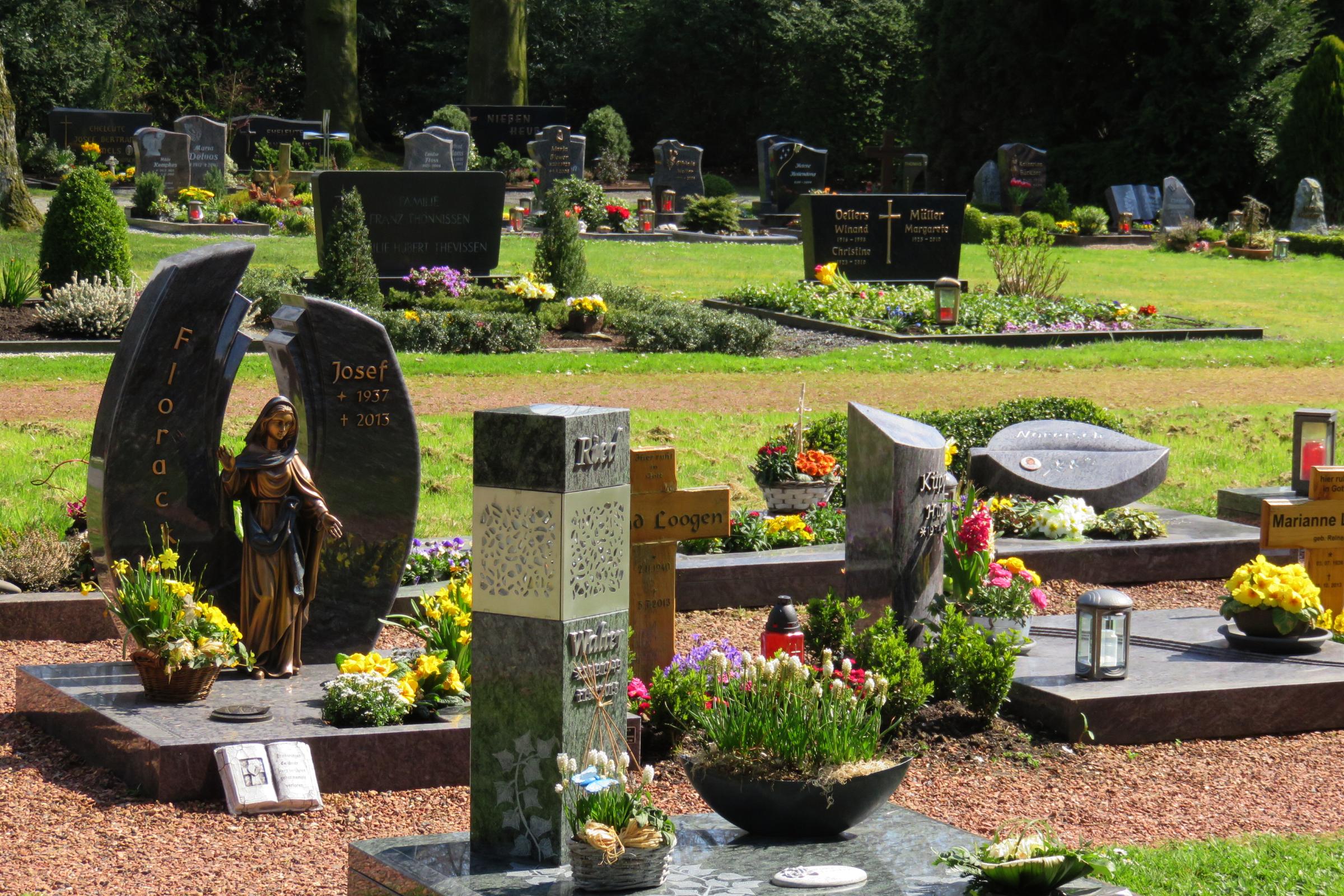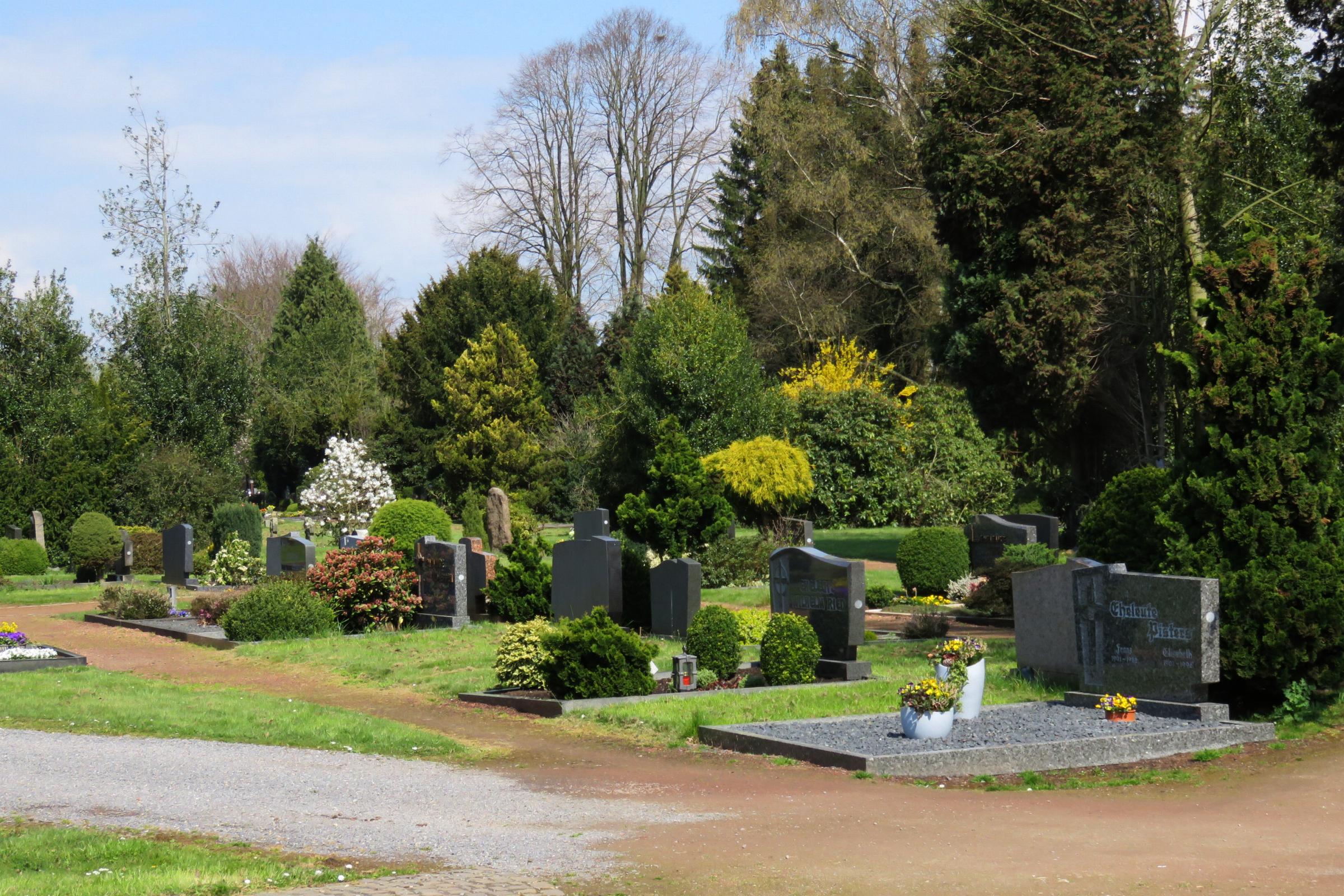 Standort und Beschreibung: Die Friedhofanlage in Rath-Anhoven befindet sich am Rheinweg, in der Stadt Wegberg. Am Friedhofseingang steht die Friedhofskapelle. Eine Gedenkstätte für die verstorbenen und vermißten Soldaten beider Weltkriege und ein Soldatenfriedhof sind Bestandteil des Friedhofs.