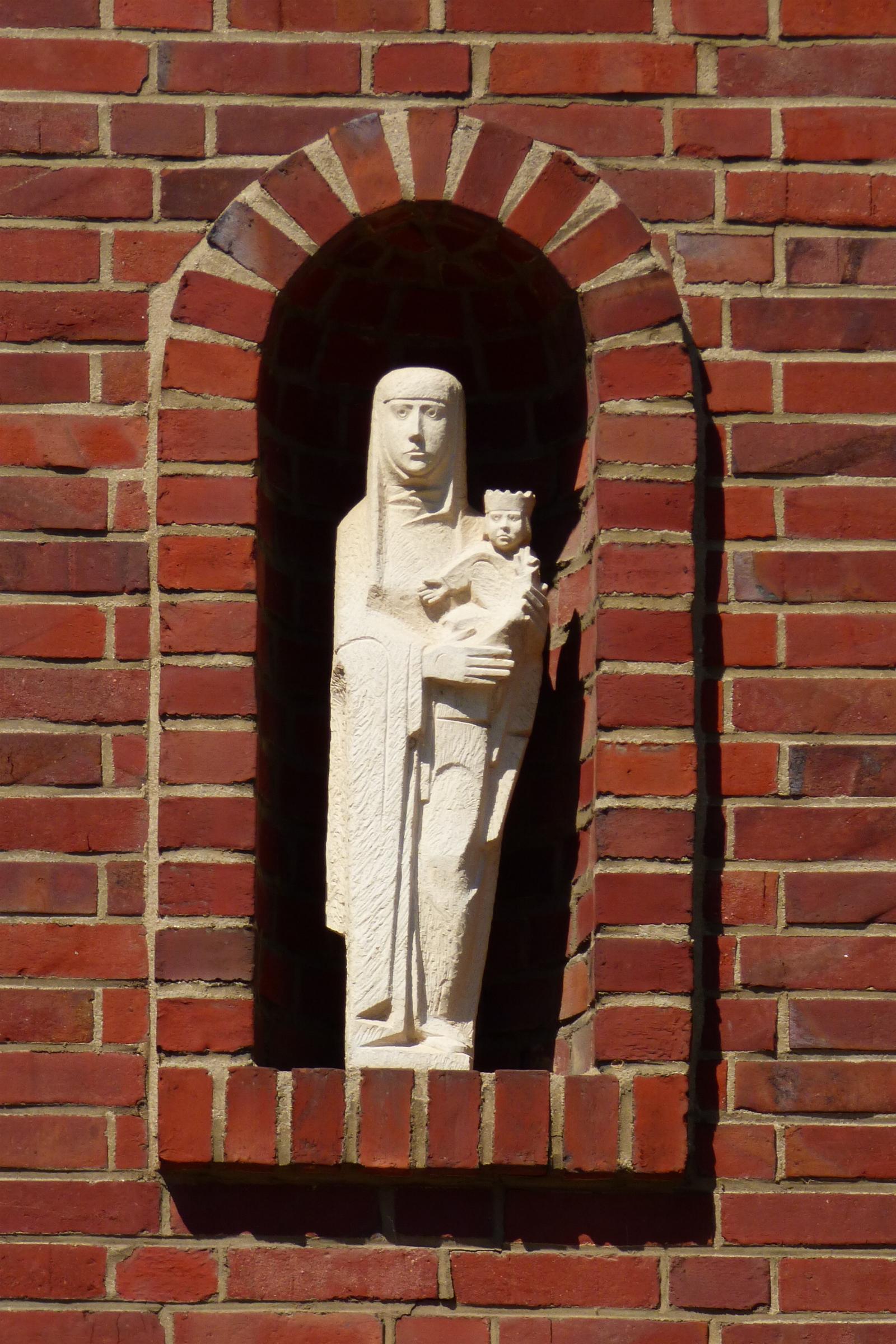 Standort: Die Hausfigur hat ihren Standort an Großer Pley 57, im Ortsteil Birgden, in der Gemeinde Gangelt. Geschichte: Bei der Hausfigur handelt es sich um eine ca. 0,80 m hohe Madonna mit Kind in einer gemauerten Figurennische.