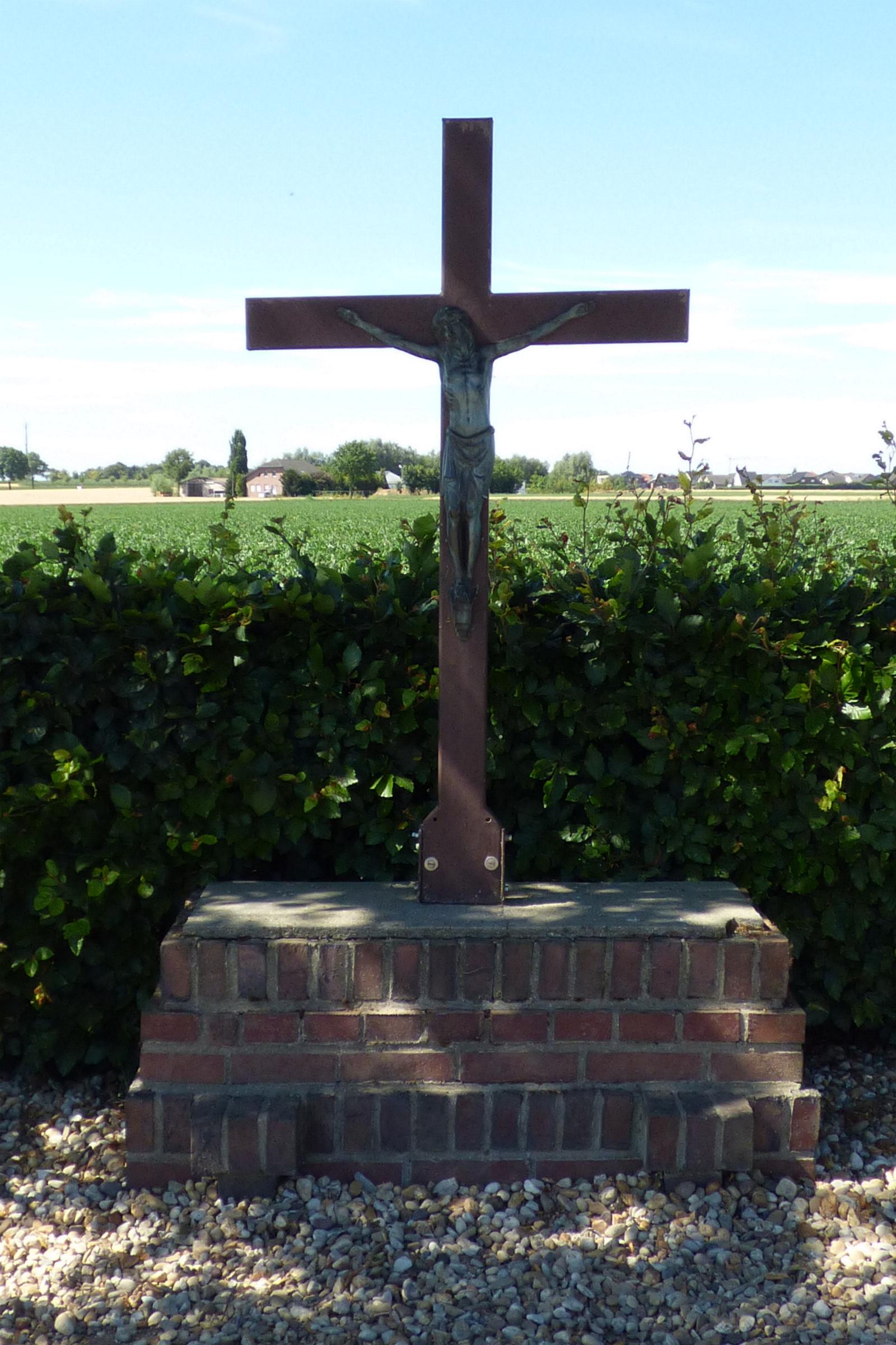 Standort: Das Wegekreuz hat seinen Standort Hinter den Wiesen, im Ortsteil Birgden, in der Gemeinde Gangelt. Geschichte: Bei dem Wegekreuz handelt es sich um ein ca. 1,50 m hohes Eisenkreuz mit einem Korpus auf einem breit gemauerten Ziegelsteinsockel.