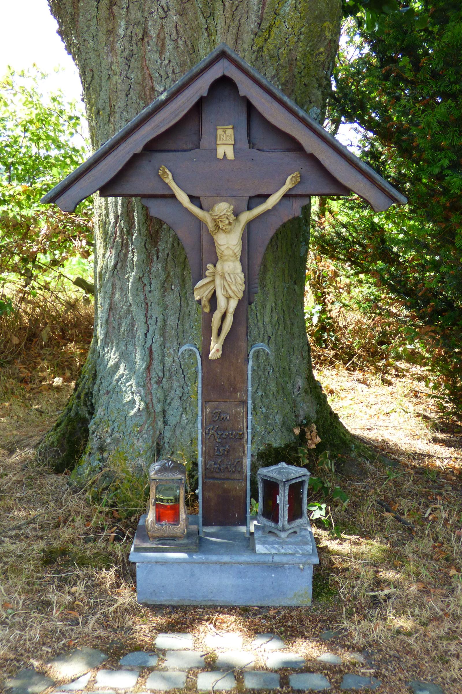 Wegekreuz in der Feldlage Hühnerfeld in Hastenrath Standort: Das Wegekreuz hat seinen Standort in der Feldlage Hühnerfeld, im Ortsteil Hastenrath, in der Gemeinde Gangelt. Geschichte: Bei dem Wegekreuz handelt es sich um ein ca. 1,50 m hohes Holzkreuz mit einem Korpus unter einer Überdachung.
