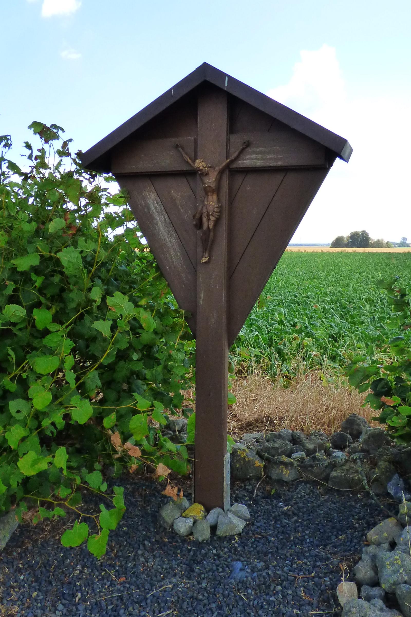 Standort: Das Wegekreuz hat seinen Standort an der Von Lieck Straße, in Kievelberg in der Gemeinde Gangelt. Geschichte: Bei dem Wegekreuz handelt es sich um ein ca. 2,20 m hohes Holzkreuz mit einem Korpus unter einer Überdachung.