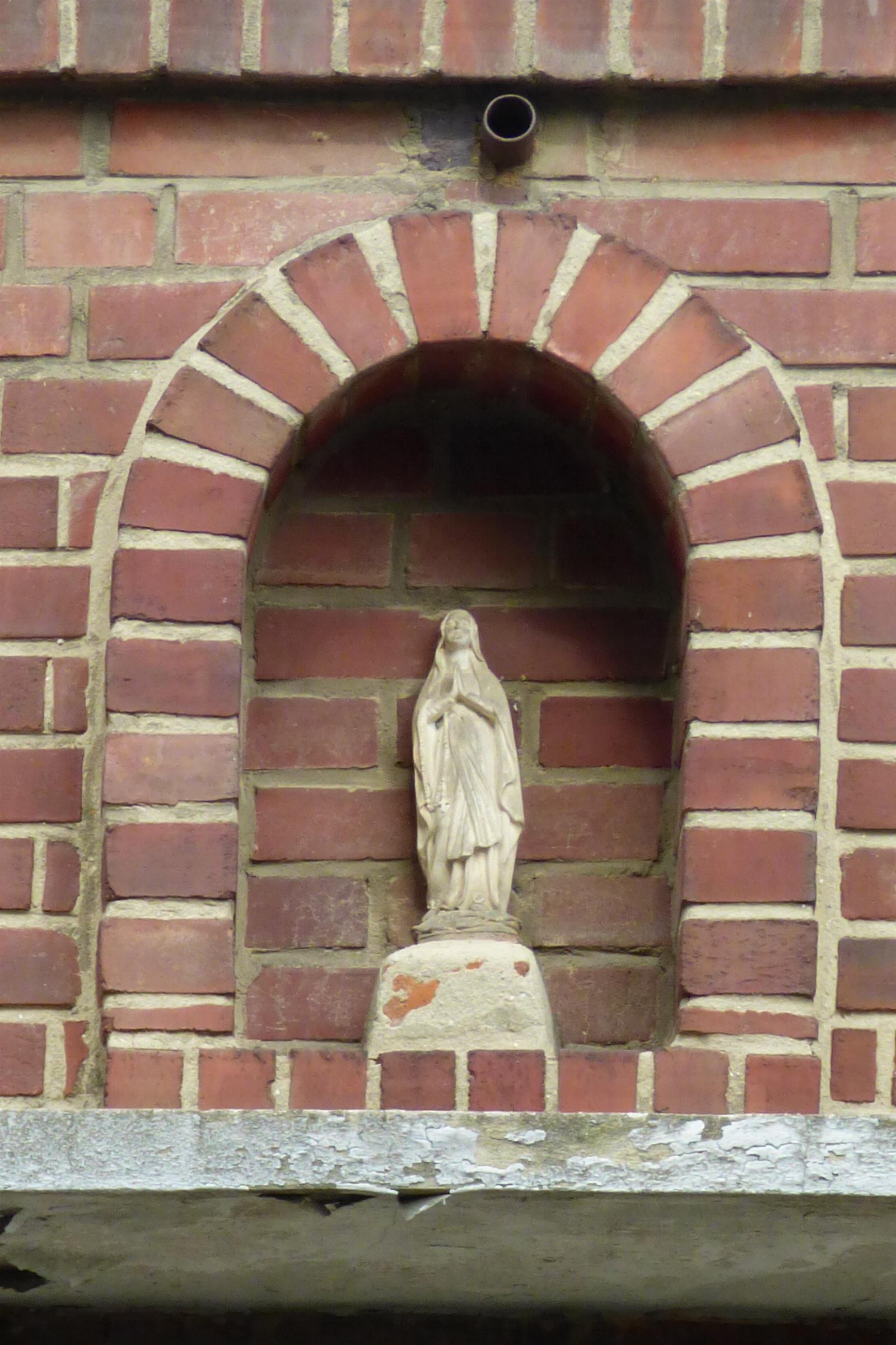 Standort: Die Hausfigur hat ihren Standort an der Mittelstraße 8, im Ortsteil Langbroich, in der Gemeinde Gangelt. Geschichte: Bei der Hausfigur handelt es sich um eine ca. 0,30 m hohe betende Madonna in einer gemauerten Figurennische.
