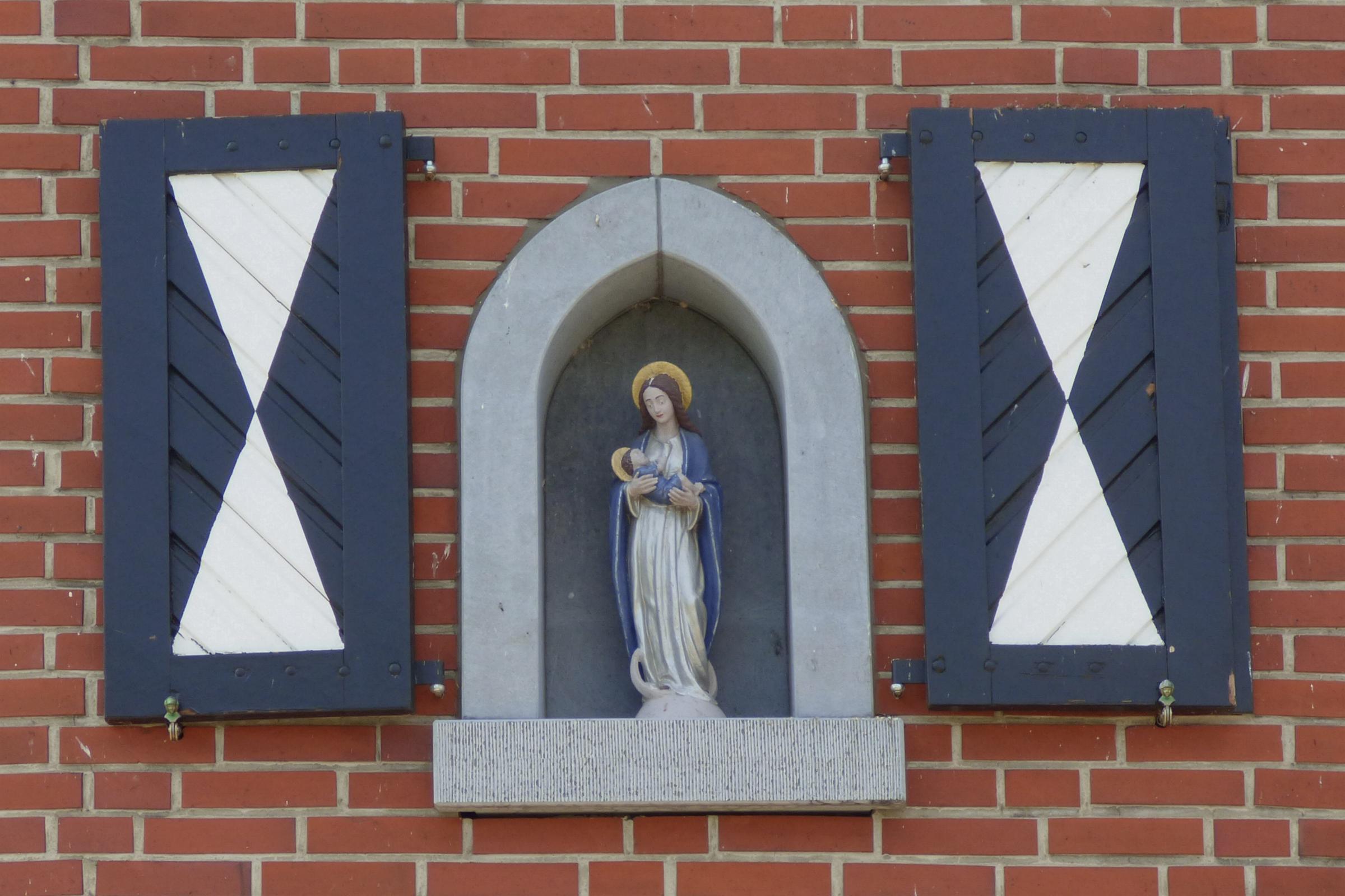 Standort: Die Madonna mit Kind hat ihren Standort in Bocket 11, im Stadtteil Bocket, in der Stadt Geilenkirchen. Beschreibung: Die Madonna mit Kind hat eine Höhe von ca. 0,50 m und befindet sich in einer spitzbogigen Mauernische.