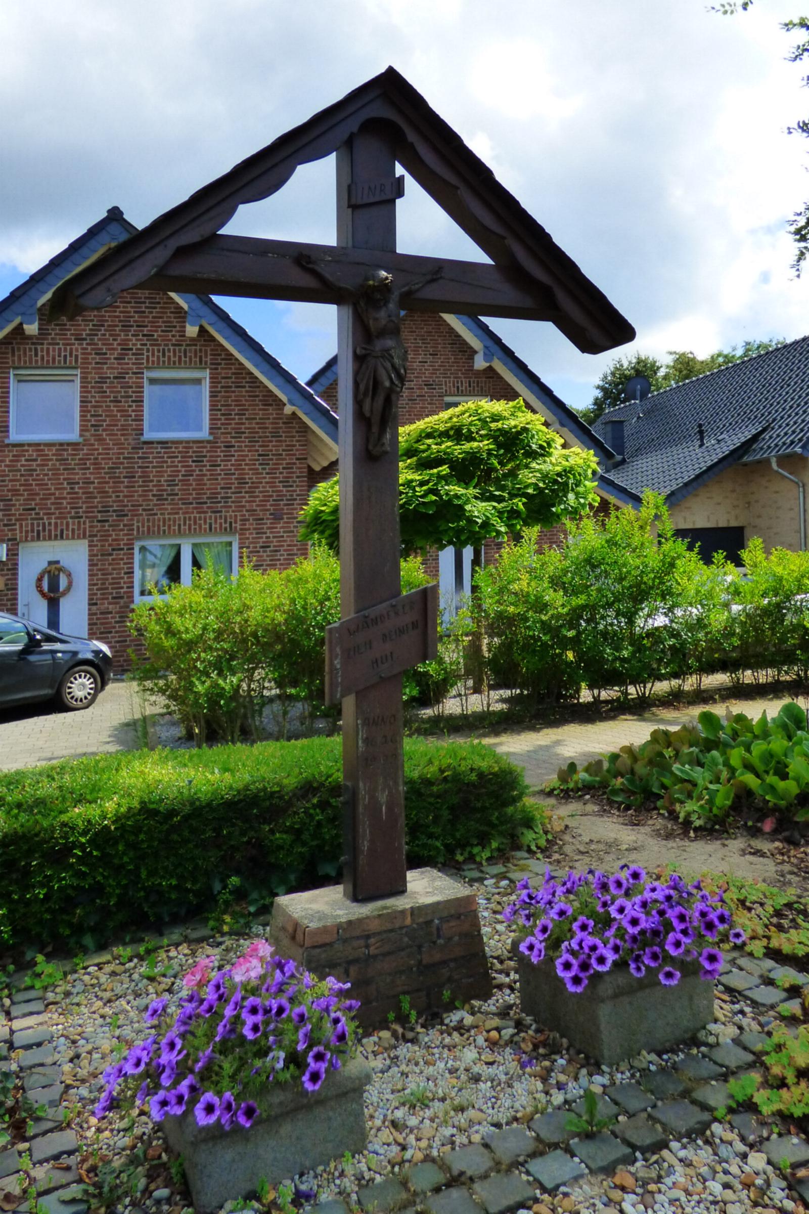 Standort: Das Feldkreuz hat seinen Standort an der Prof. Mendel Straße 55, im Stadtteil Hatterath, in der Stadt Geilenkirchen. Beschreibung: Bei dem Feldkreuz handelt es sich um ein ca. 2,50 m hohes Holzkreuz mit einem Korpus unter einer Überdachung. Das Feldkreuz stammt aus dem Jahr 1626 und wurde 1974 erneuert. Eine Holztafel trägt die Inschrift: W a n d e r e r z i e h d e i n e n H u t