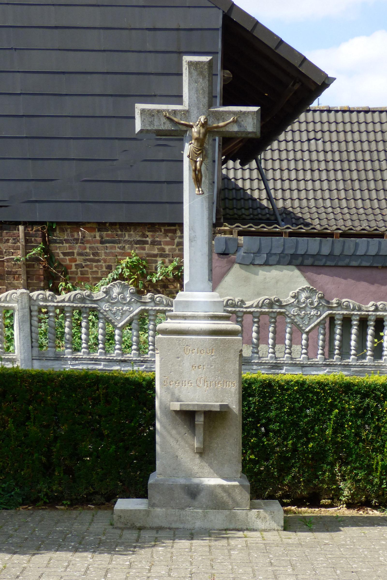 Standort: Das Wegekreuz hat seinen Standort an der Apweiler Straße 23, im Stadtteil Immendorf, in der Stadt Geilenkirchen. Beschreibung: Bei dem Wegkreuz handelt es sich um ein ca. 3,00 m hohes Steinkreuz mit einem Metallkorpus. Die Inschrift des Kreuzes lautet: Gelobt sei Jesus Christus