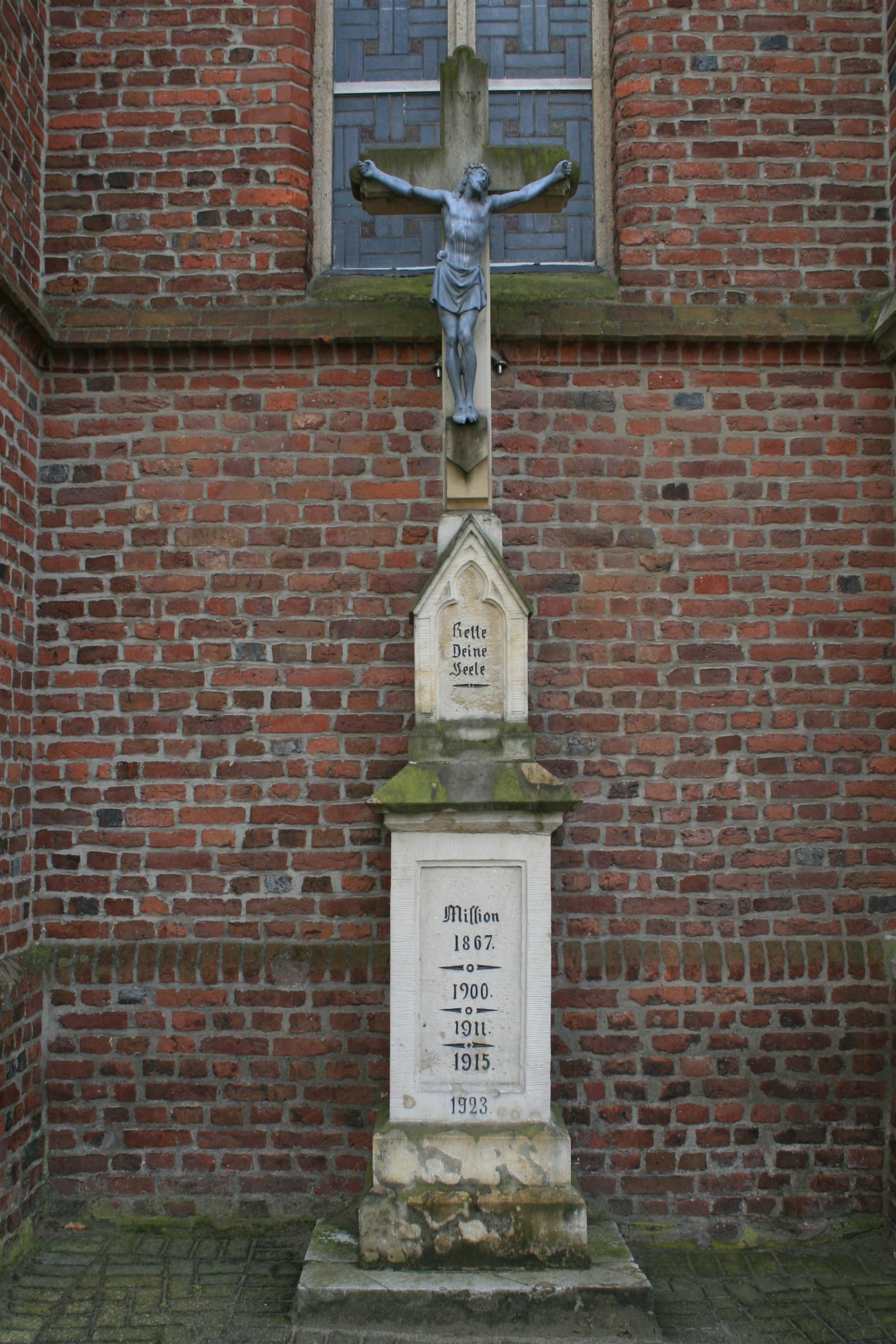 Standort: Das Missionskreuz hat seinen Standort an der Kirche an der Stiftsstraße, im Stadtteil Lindern, in der Stadt Geilenkirchen. Das Kreuz steht mit der Nr. 37 in der Denkmalliste der Stadt Geilenkirchen unter Denkmalschutz. Beschreibung: Bei dem Missionskreuz handelt es sich um ein ca. 3,80 m hohes Steinkreuz mit einem Metallkorpus aus dem Jahr 1867. Die Inschrift lautet: Rette Deine Seele Mission 1867, 1900, 1911, 1915, 1923 Quellenhinweis * Denkmalliste Geilenkirchen, Nr. 37, Eintrag vom 4. Mai 1983 * Dritte Ausgabe 1994: Handbuch des Bistums Aachen ISBN 3-87448-172-7