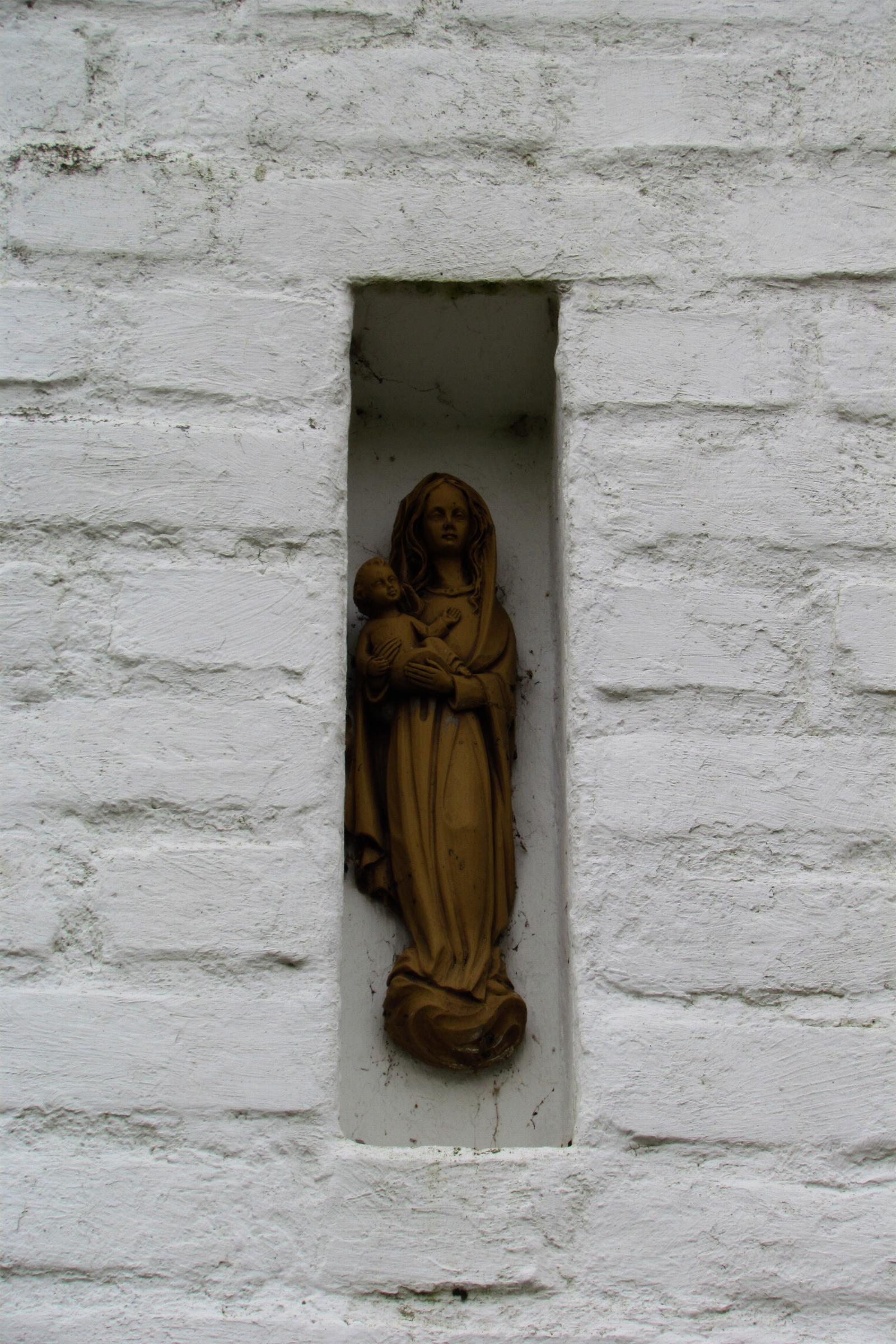 Standort: Die Madonna mit Kind hat ihren Standort in einer kleinen Nische, über dem Eingang zur Kapelle, im Stadtteil Nirm, in der Stadt Geilenkirchen. Die Kapelle mit der Madonna steht mit der Nr. 62 in der Denkmalliste der Stadt Geilenkirchen unter Denkmalschutz. Beschreibung: Bei der Madonna mit Kind handelt es sich um eine ca. 0,30 m hohe Figur in einer schmalen Wandnische. Quellenhinweis * Denkmalliste Geilenkirchen, Nr.62, Eintrag vom 12. Oktober 1984