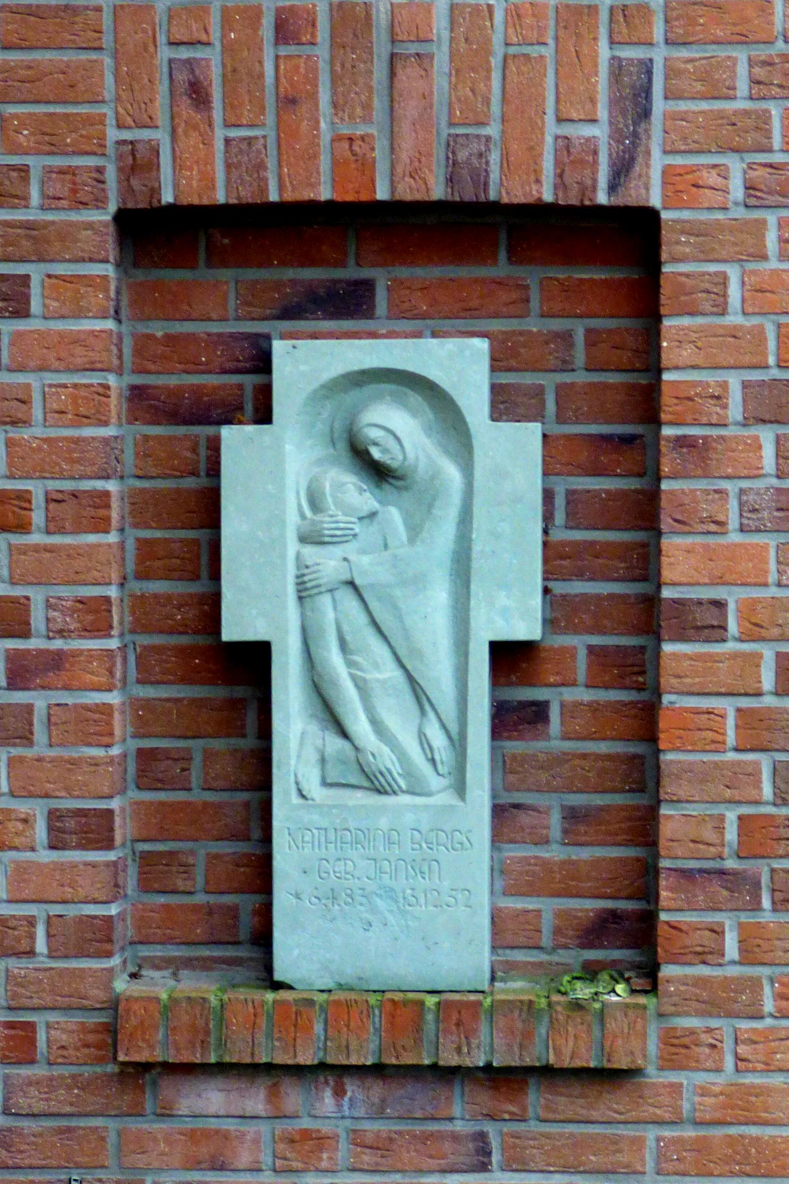 Standort: Die Figur der schmerzhaften Mutter hat seinen Standort an der Kampstraße 10, im Stadtteil Prummern, in der Stadt Geilenkirchen. Sie steht in einer Mauernische . Beschreibung: Bei der Figur handelt es sich um ein ca. 0,80 m hohes Steinkreuz mit eingelassenen Figuren. Das ehemalige Friedhofskreuz trägt die Inschrift: Bergs Katharina geb. Jansen * 06.04.1883 + 13.12.1952