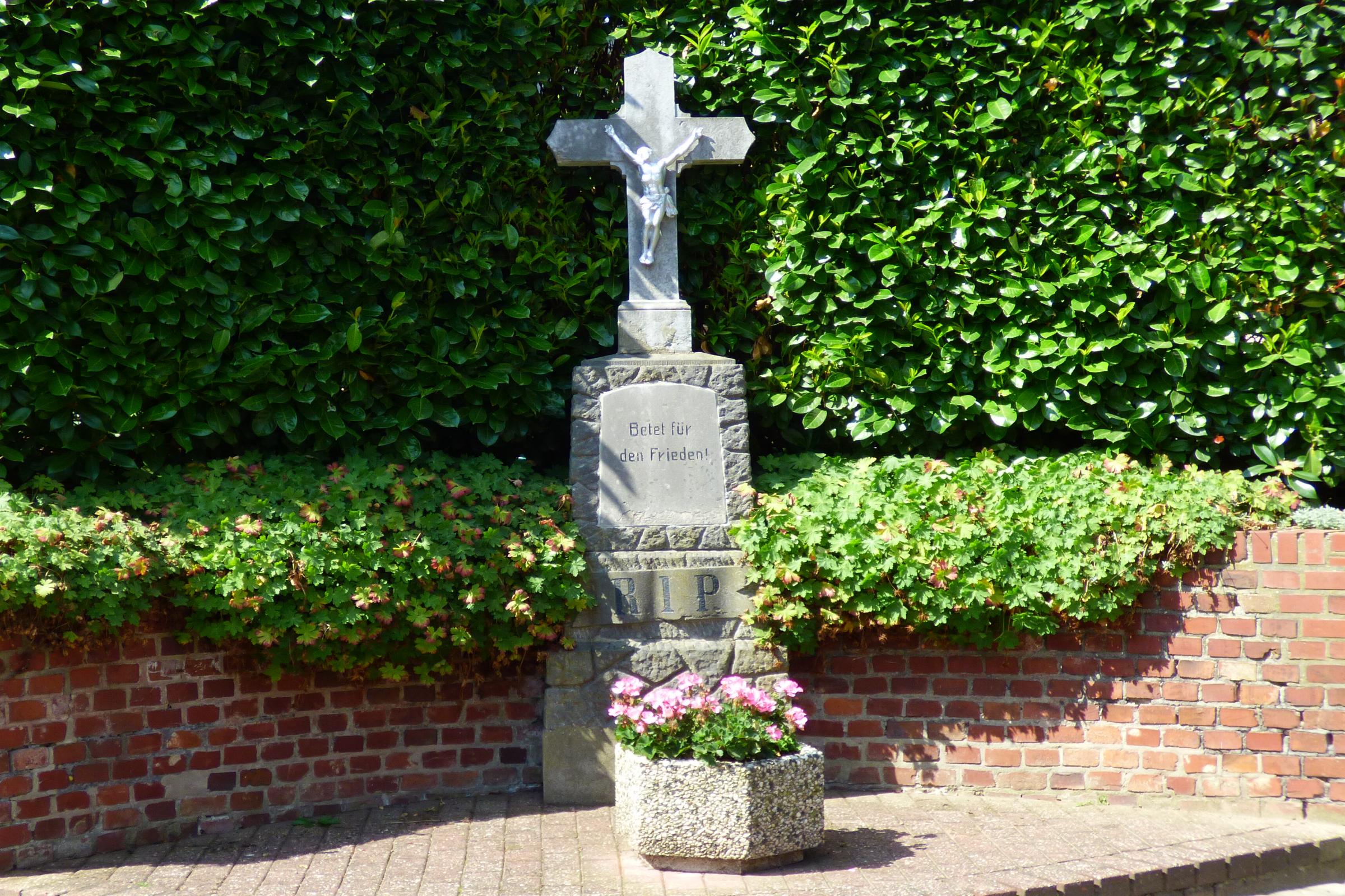 Standort: Das Wegekreuz hat seinen Standort an der Ecke Gereonsweiler Straße 20 / Meroderhofstraße im Stadtteil Prummern, in der Stadt Geilenkirchen. Beschreibung: Bei dem Wegekreuz handelt es sich um ein ca. 2,50 m hohes Steinkreuz mit einem Korpus. Das mehrfach gestufte Kreuz ist Station der Fronleichnamsprozession. Es trägt die Inschrift: Betet für den Frieden! R I P