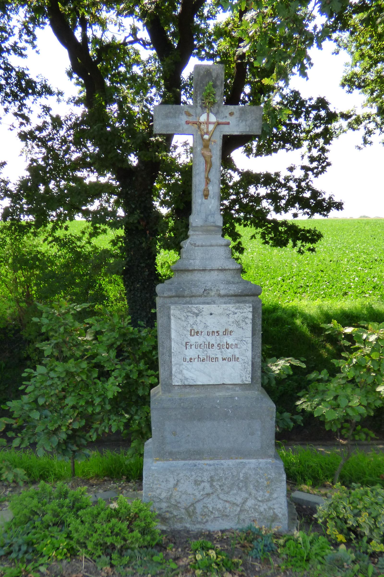 Standort: Das Wegekreuz hat seinen Standort an der Süggerather Straße, im Bereich der Gemarkung Mühlengracht, im Stadtteil Prummern, in der Stadt Geilenkirchen. Beschreibung: Bei dem Wegekreuz handelt es sich um ein ca. 2,50 m hohes Steinkreuz mit einem Korpus als Relief. Das Kreuz ist mehrfach gestuft und trägt die Inschrift: Der uns die Früchte geben u. erhalten wolle