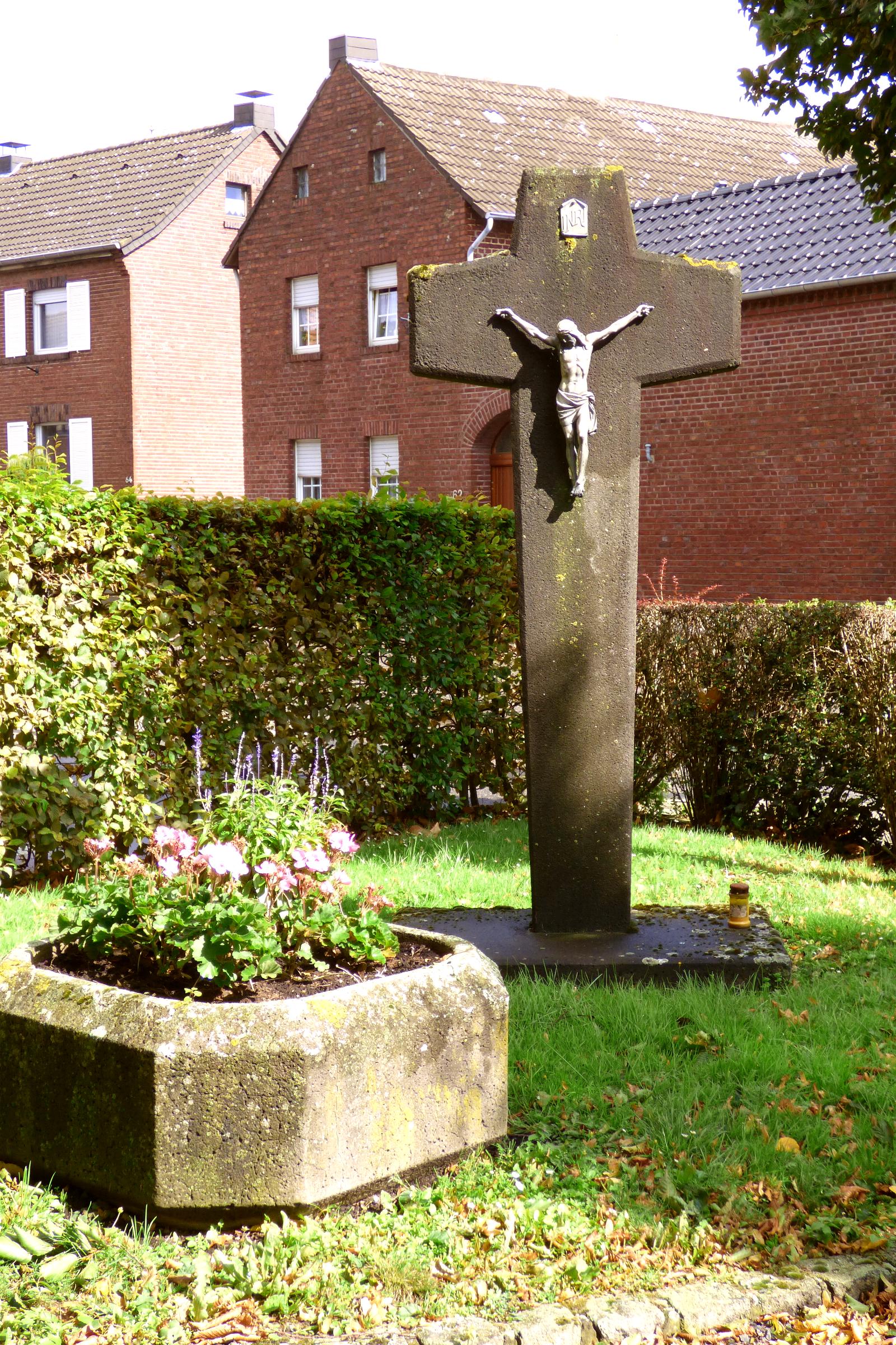 Standort: Das Wegekreuz hat seinen Standort an der Annastraße 55, im Stadtteil Tripsrath, in der Stadt Geilenkirchen. Beschreibung: Bei dem Wegekreuz handelt es sich um ein ca. 2,80 m hohes Werkstoffkreuz mit einem Korpus aus dem 20. Jahrhundert.