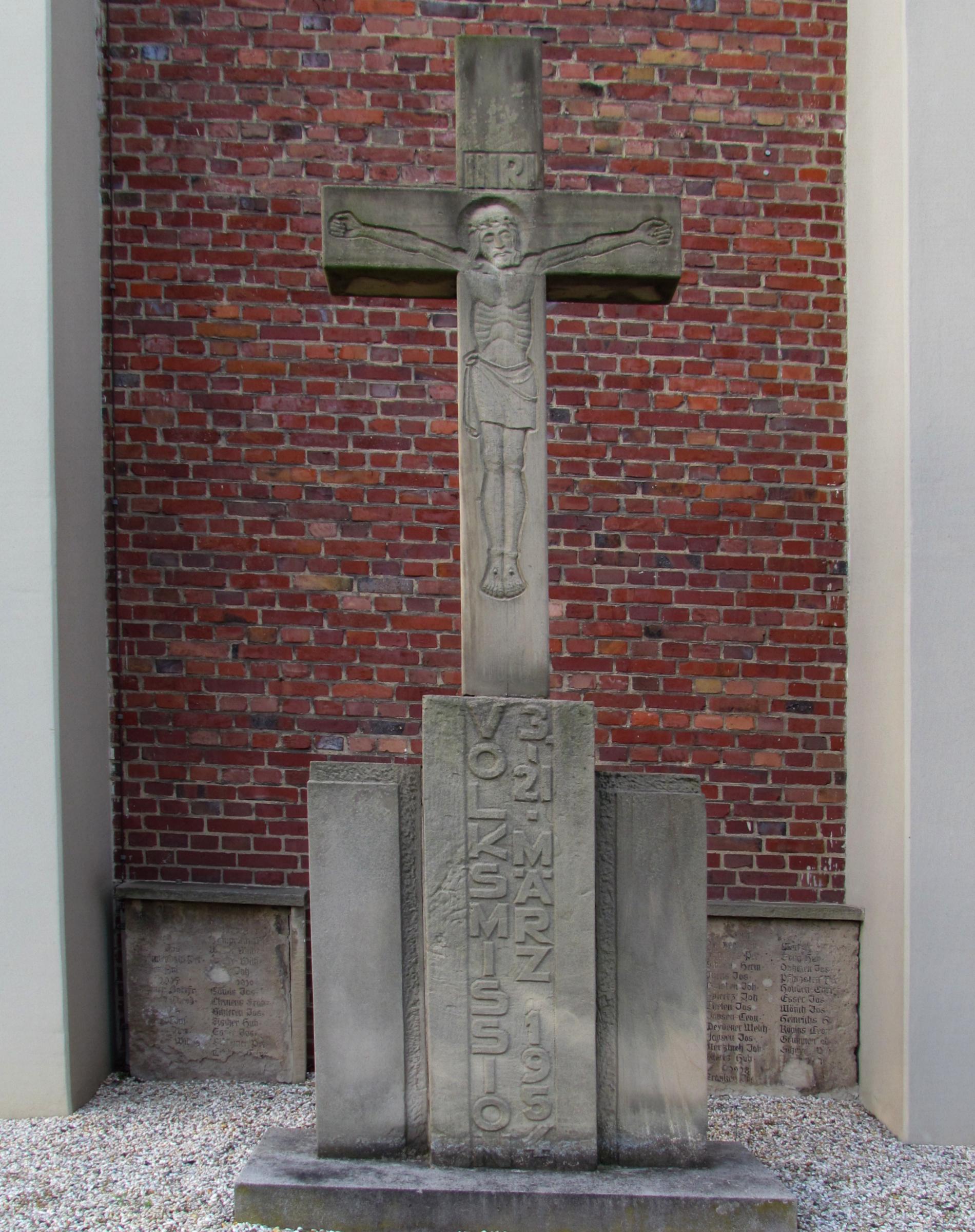 Standort: Das Missionskreuz hat seinen Standort an der Kirche, im Stadtteil Würm, in der Stadt Geilenkirchen. Beschreibung: Bei dem Missionskreuz handelt es sich um ein ca. 3,50 m hohes, Werksteinkreuz mit einem relivierten Korpus. Das Kreuz erinnert an die Volksmission vom 3. bis 21. März 1954.