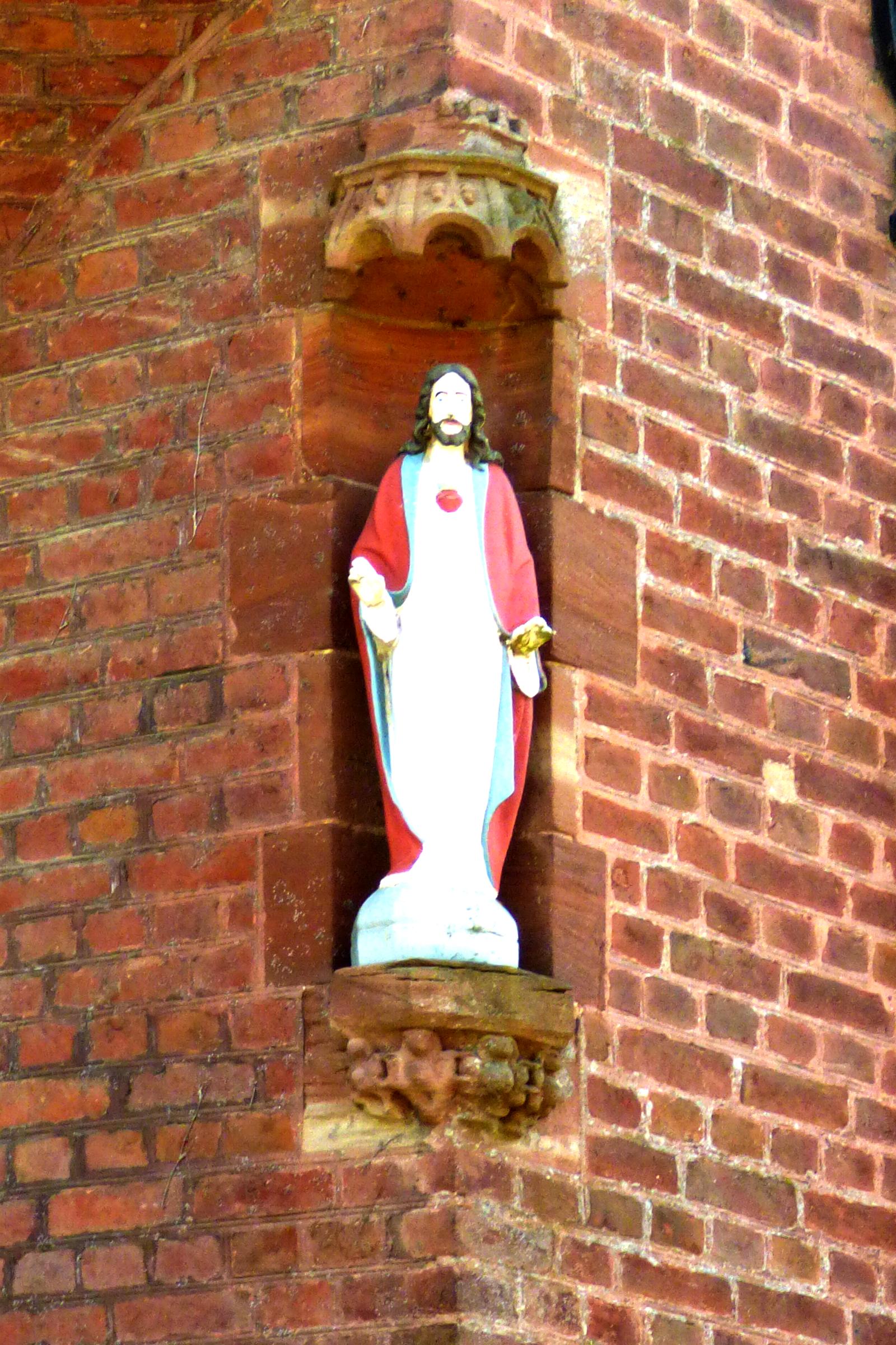 Standort: Die Herzjesu Figur hat ihren Standort in einer Mauernische des Hauses Talstraße 64, in Aphoven, in der Stadt Heinsberg. Beschreibung: Bei der Herzjesu Figur handelt es sich um eine ca 1,00 m hohe Gipsfigur. Die Mauernische besteht aus einer Konsole, bearbeiteten Sandsteinen und einem Baldachin.