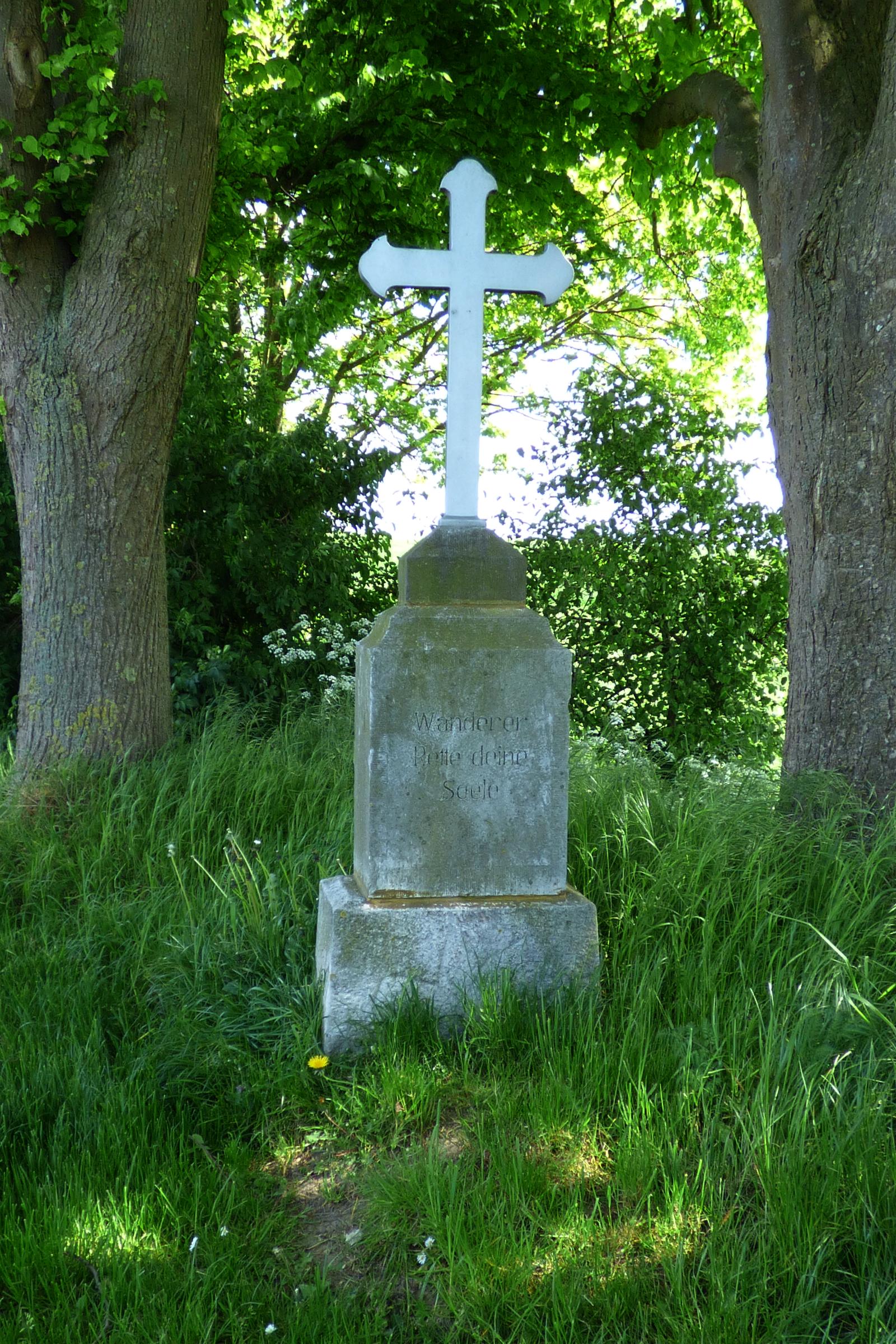 Standort: Das Wegekreuz hat seinen Standort am Aphover Steg, in Aphoven, in der Stadt Heinsberg. Beschreibung: Bei dem Wegekreuz handelt es sich um ein ca. 2,20 m hohes, gestuftes Steinkreuz ohne Korpus. Im Mittelteil des Kreuzes steht die Inschrift: Wanderer Rette Deine Seele
