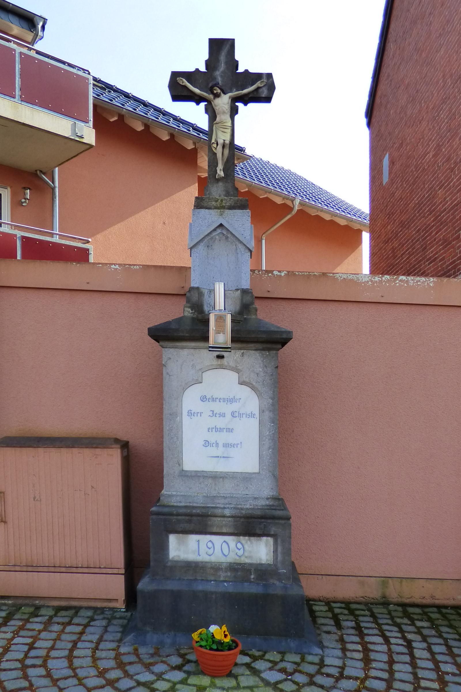 Standort Das Wegekreuz hat seinen Standort an der Jülicher Straße 22, im Stadtteil Dremmen, in der Stadt Heinsberg. Beschreibung: Bei dem Wegekreuz handelt es sich um ein ca. 3,00 m hohes, mehrfach gestuftes Steinkreuz mit einem Korpus aus dem Jahr 1909. Auf drei Marmortafeln sind Inschriften eingelassen. Inschrift in der Mitte: Gekreuzigter Herr Jesu Christe, erbarme Dich unser 1909 Inschrift linke Seite: Trag dein Kreuz nur immer froh, denn dein Heiland will es so! Inschrift rechte Seite: Wanderer bist du bereit heute zu geh´n in die Ewigkeit!