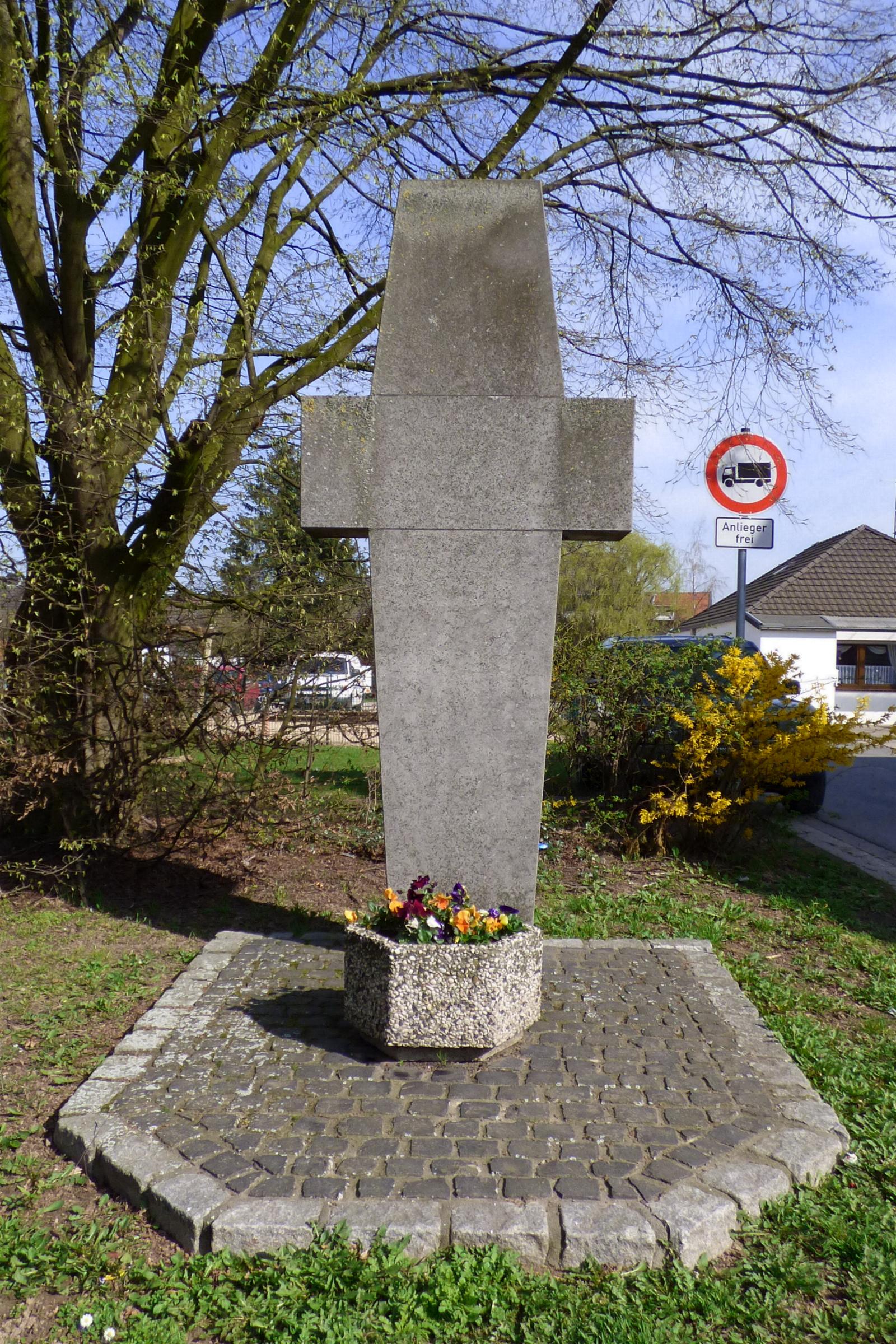 Standort: Das Wegekreuz hat seinen Standort am Spielplatz, an der Sebastianusstraße 14, im Stadtteil Dremmen, in der Stadt Heinsberg. Beschreibung: Bei dem Wegekreuz handelt es sich um ein ca. 3,00m hohes Steinkreuz. Vor dem Kreuz steht auf einer gepflasterten Fläche ein Blumenkübel.