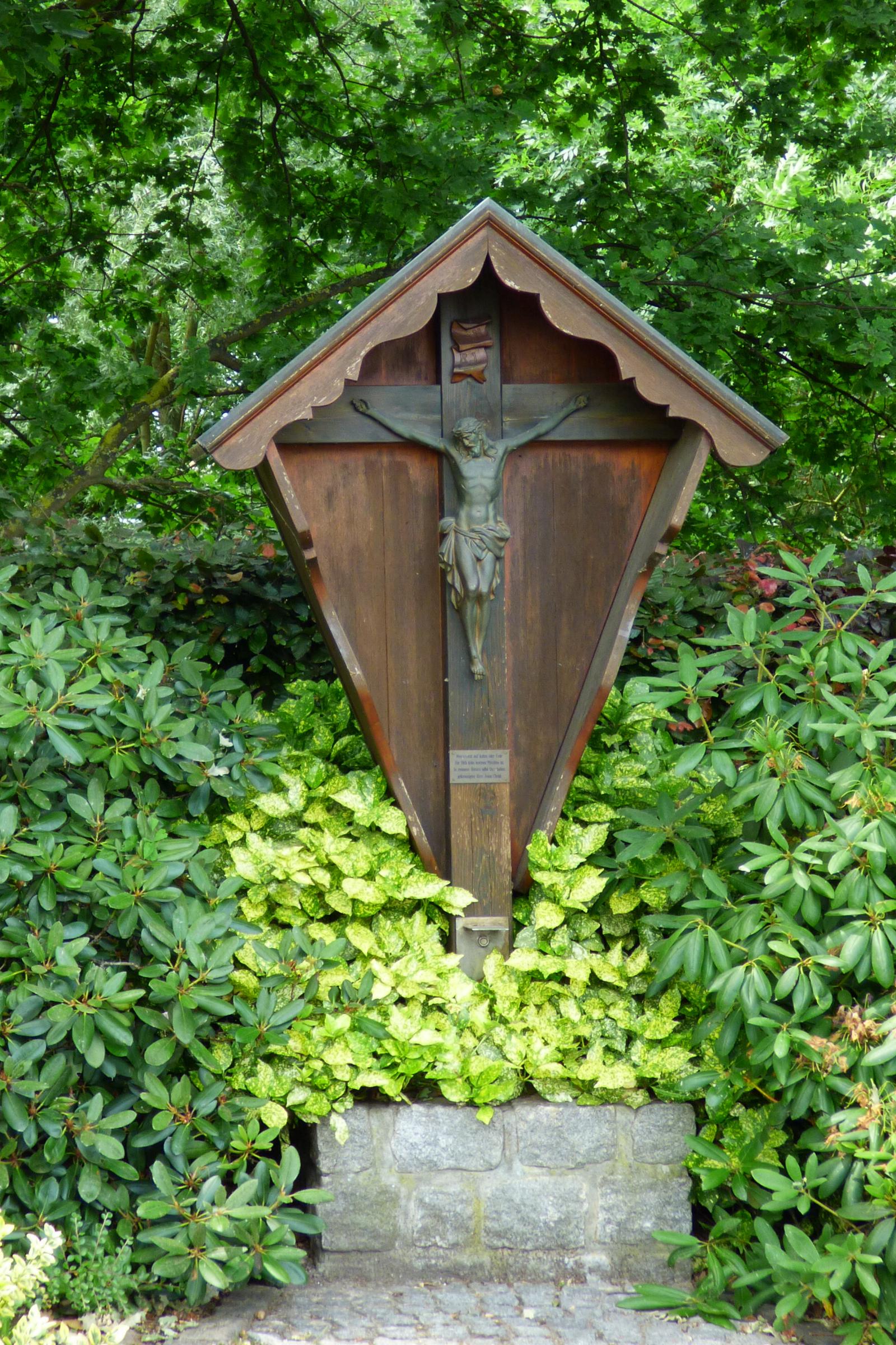 Standort: Das Wegekreuz befindet sich am Spielplatz in Grebben, in der Stadt Heinsberg Beschreibung: Bei dem Wegekreuz handelt es sich um eine ca. 1,50 m hohes Holzkreuz mit einem Korpus unter einer Überdachung. Das Kreuz steht auf einem gemauerten Sockel aus Natursteinen.