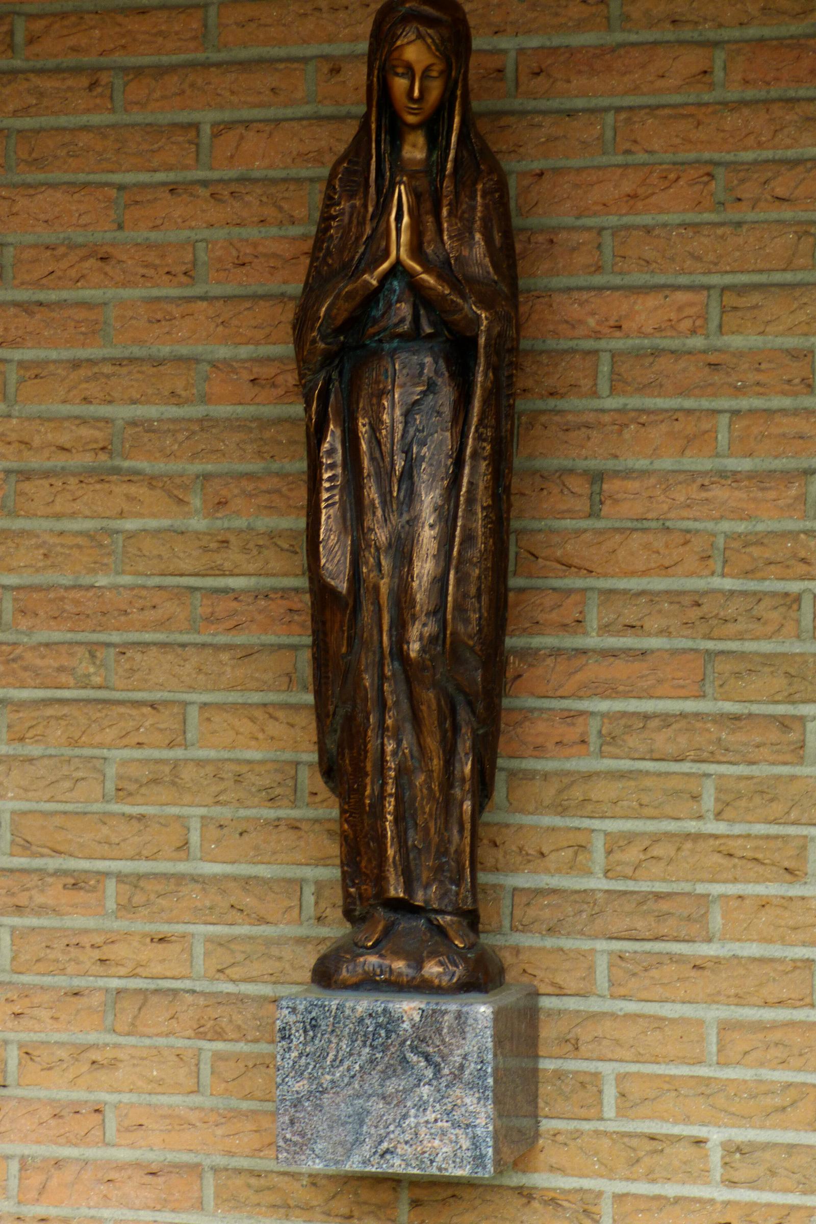 Standort: Die betende Madonna hat ihren Standort an der Friedhofshalle an der Randerather Straße, im Stadtteil Horst, in der Stadt Heinsberg. Sie ist Bestandteil der Friedhofanlage. Beschreibung: An der linken Seite der Friedhofshalle steht auf einem Podeststein eine ca. 1,50 m hohe betende Madonna.