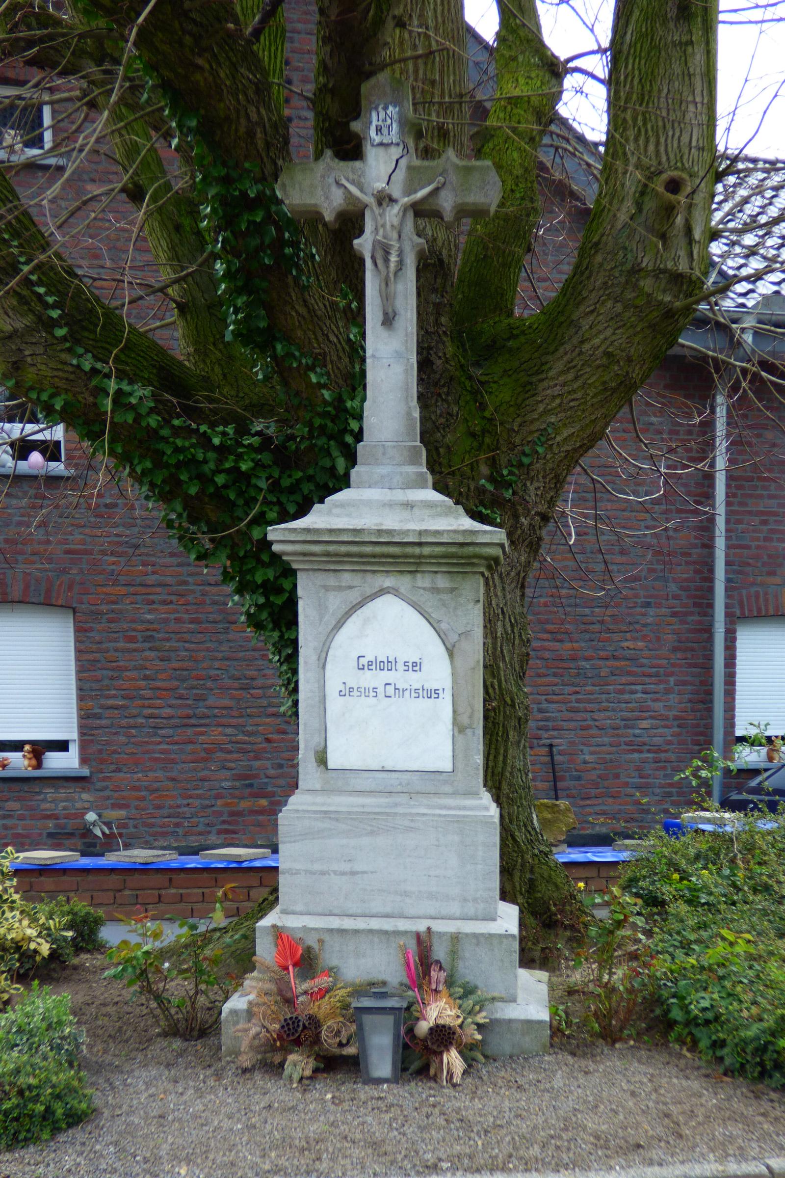 Standort: Das Wegekreuz hat seinen Standort an der Randerather Straße 38, gegenüber der Kirche, im Stadtteil Horst, in der Stadt Heinsberg. Das Wegekreuz steht mit der Nr. 31 in der Denkmalliste der Stadt Heinsberg unter Denkmalschutz. Beschreibung: Bei dem Wegekreuz handelt es sich um ein ca. 3,20 m hohes Steinkreuz mit einem Metallkorpus. Im Mittelteil des Kreuzes steht die Inschrift: Gelobt sei Jesus Christus ! Quellenhinweis * Dritte Ausgabe 1994: Handbuch des Bistums Aachen ISBN 3-87448-172-7 S. 726 * Denkmalliste Heinsberg, Nr. 31, Eintrag vom 19. Januar 1984
