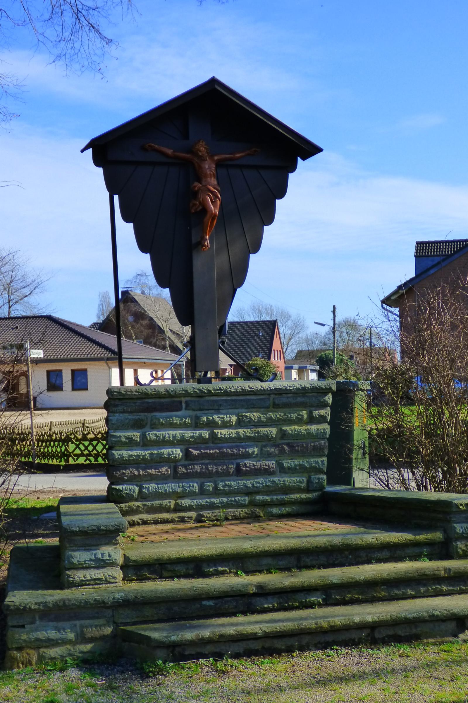 Standort: Das Himmelskreuz hat seinen Standort an der Straßenecke Karkener Straße / Kreuzstraße , im Stadtteil Karken in der Stadt Heinsberg. Beschreibung: Bei dem Himmelskreuz an der Karkener Straße handelt es sich um ein ca. 2,00 m hohes Holzkreuz mit einem Korpus und einer Überdachung. Das Kreuz steht auf einem altarähnlichen Sockel. Die gesamte Anlage ist mehrstufig angelegt und ist aus Naturstein erbaut. Das sogenannte Himmelskreuz stammt aus dem 20. Jahrhundert und trägt den Korpus des alten Kreuzes aus dem 19. Jahrhundert, der von Peter Himmels gestiftet wurde. Info zum Himmelskreuz: Früher