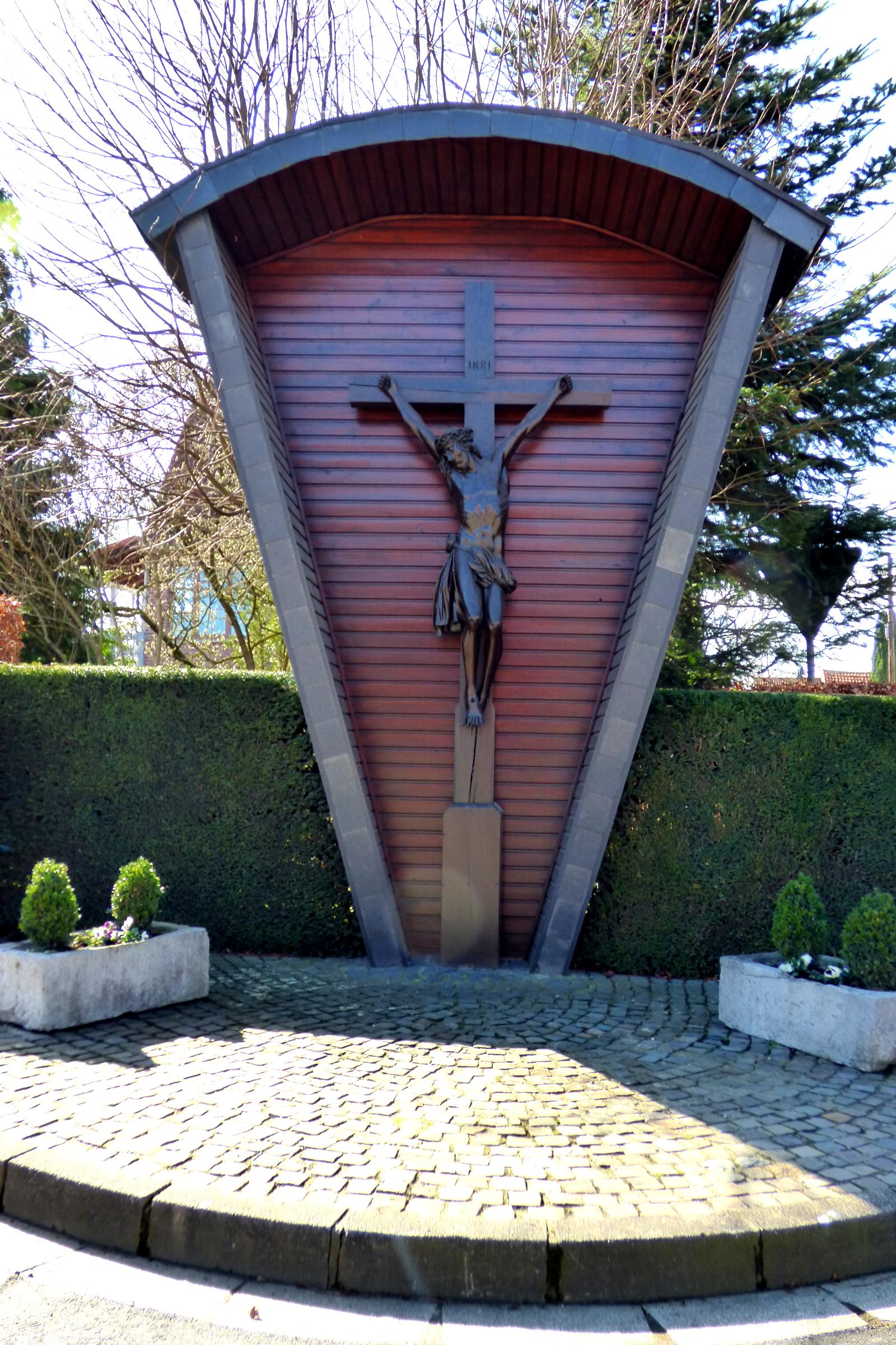 Kruzifix stammt wohl aus dem 18. Jahrhundert. Eine mächtige deutsche