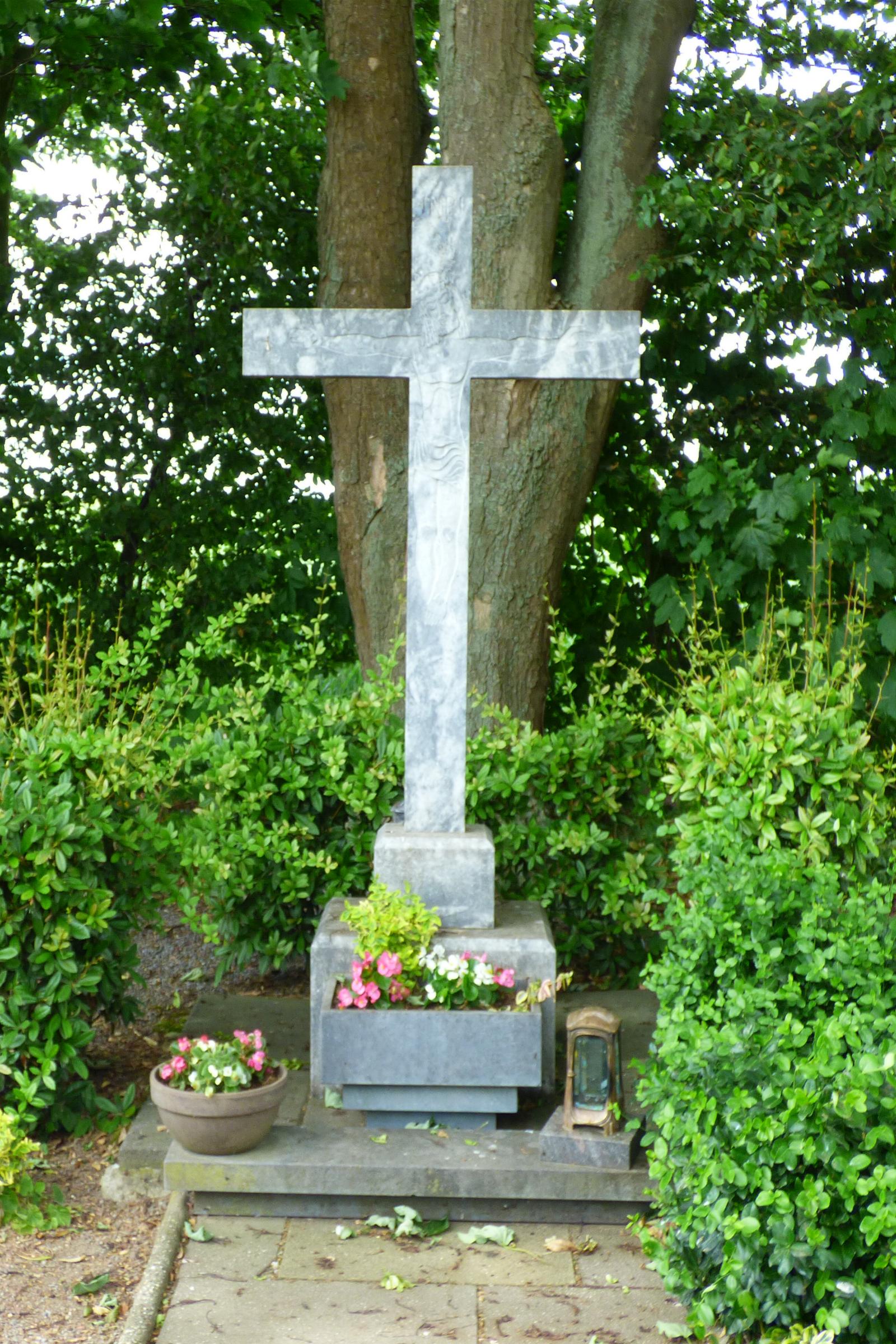 Standort: Das Wegekreuz hat seinen Standort an der Straßenecke Rossberg 23 / Bergstraße, in Kirchhoven, in der Stadt Heinsberg. Beschreibung: Bei dem Wegekreuz handelt es sich um ein ca. 2,00 m hohes Steinkreuz mit einem relifierten Korpus.