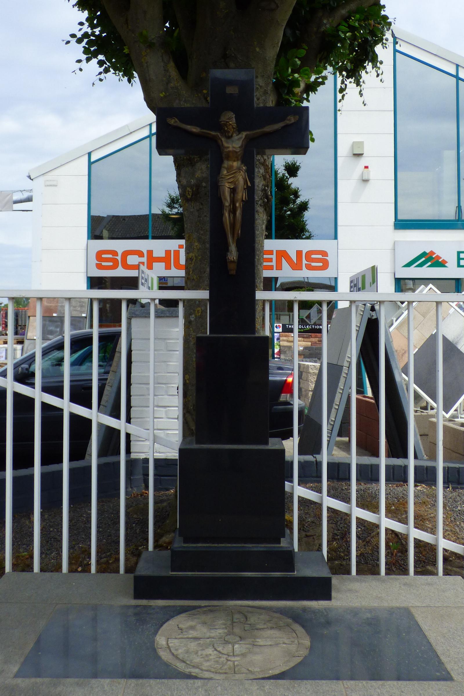 Standort: Das Wegekreuz hat seinen Standort an der Waldfeuchter Straße 332, in Kirchhoven, in der Stadt Heinsberg. Beschreibung: Bei dem Wegekreuz handelt es sich um ein mehrfach gestuftes, ca. 2,00 m hohes Marmorkreuz mit einem Metallkorpus.