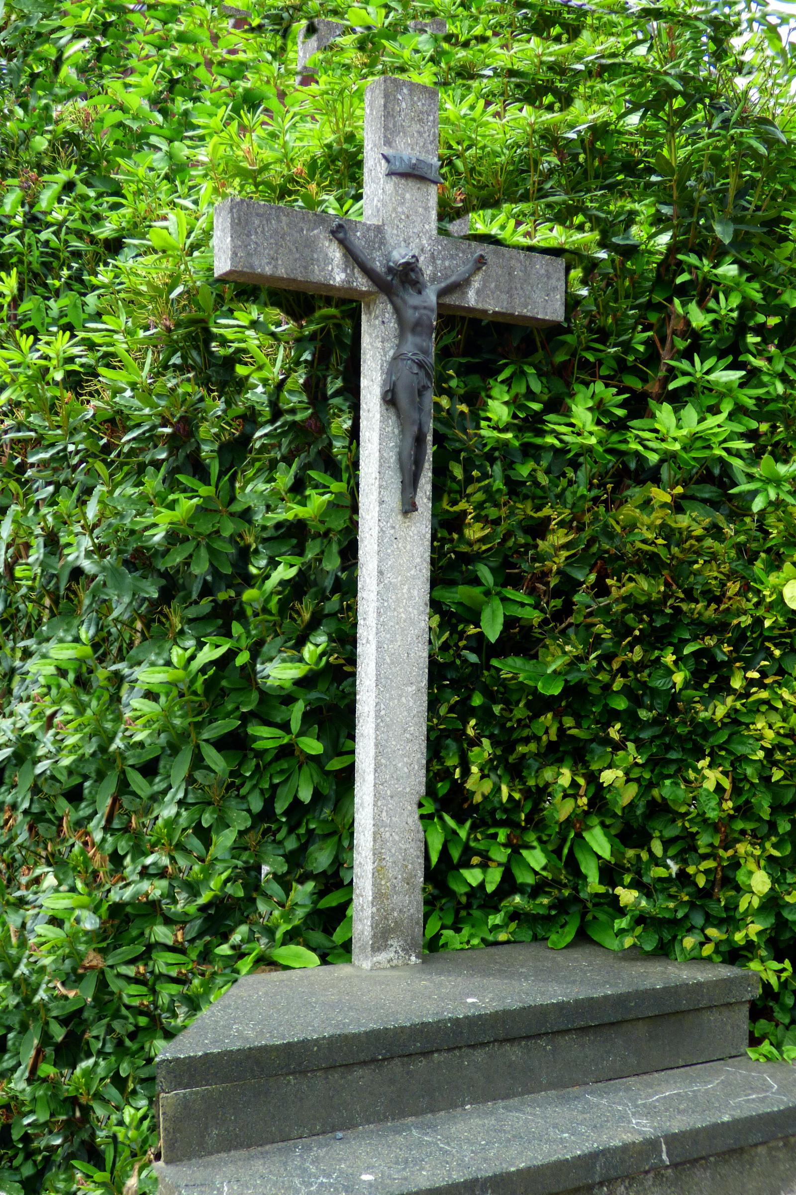 Standort: Das Wegekreuz hat seinen Standort an der Waldfeuchter Straße 87, in Kirchhoven, in der Stadt Heinsberg. Beschreibung: Bei dem Wegekreuz handelt es sich um ein ca. 2,00 m hohes Steinkreuz mit einem Metallkorpus auf einem Steinsockel.