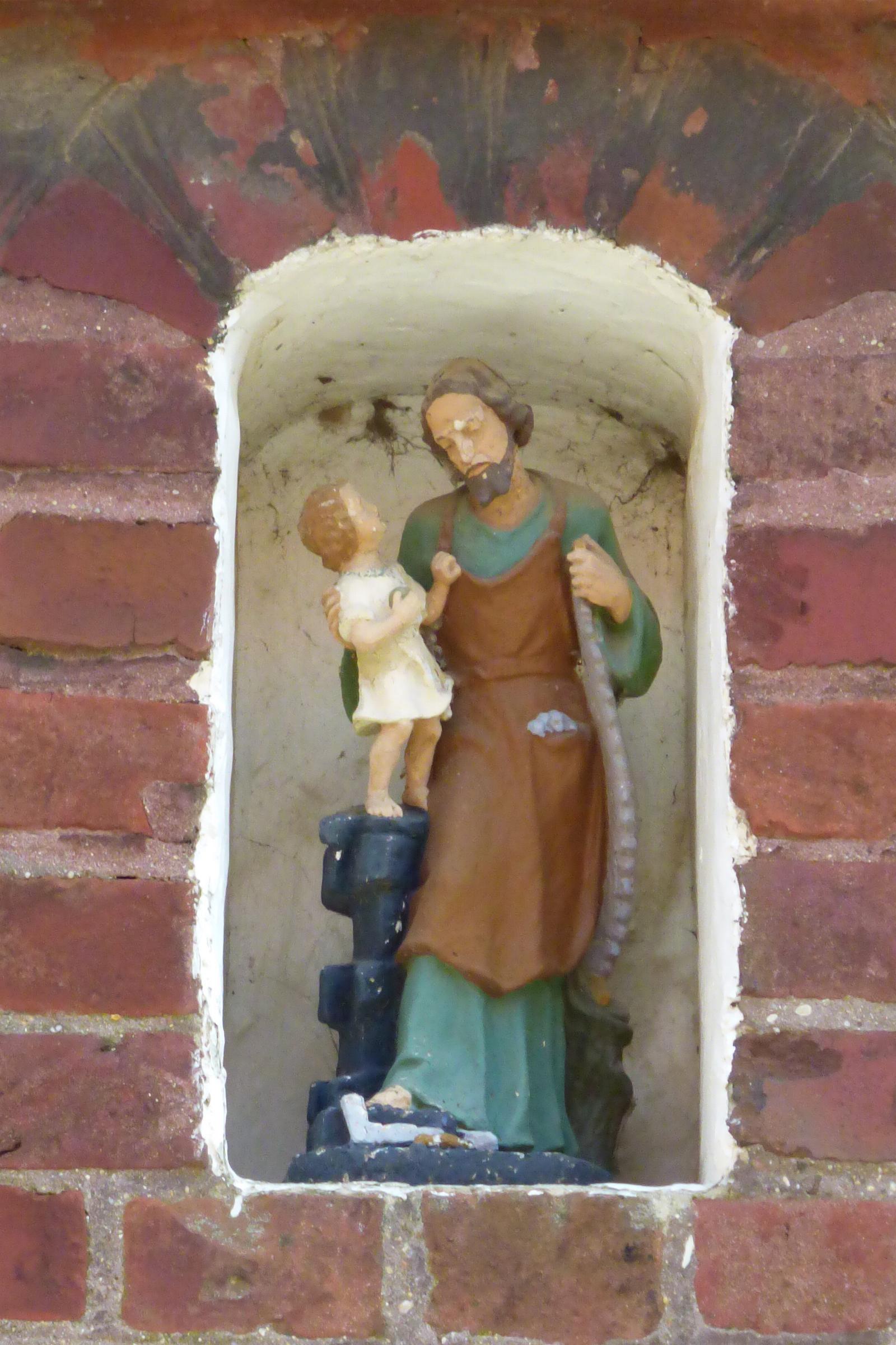 Standort: Die Josefsfigur mit Kind hat ihren Standort an der Schierwaldenrather Straße 25, im Stadtteil Laffeld, in der Stadt Heinsberg. Beschreibung: Bei der Josefsfigur mit Kind handelt es sich um ein ca. 0,50 m hohe Gipsfigur in einer rundbogigen Mauernische. Die Figur steht oberhalb der Eingangstüre.
